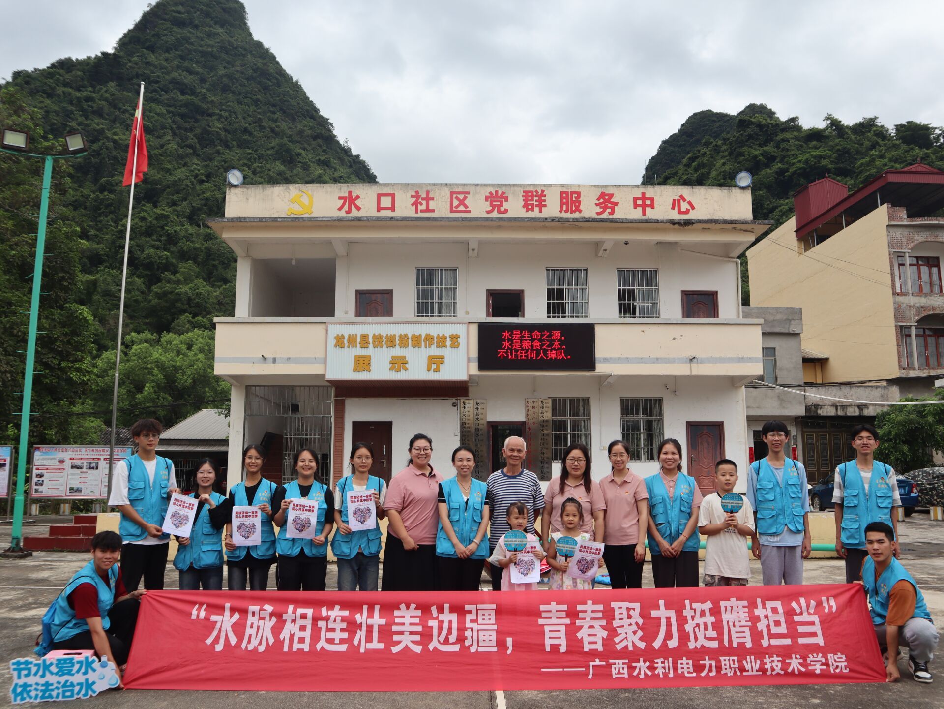 [本网讯]7月23日,水利工程学院教工第一党支部与学生党支部生命之源实践团深入边疆村落——崇左市龙州县水口镇水口街,开展节水宣传和民族团结宣传活动。此次活动由水利工程学院党总支专职副书记、副院长李小莲,教工第一党支部纪检委员张志娇,学生支部书记、团委书记庞海瑜,以及部分骨干教师和生命之源实践团成员共同参与。
