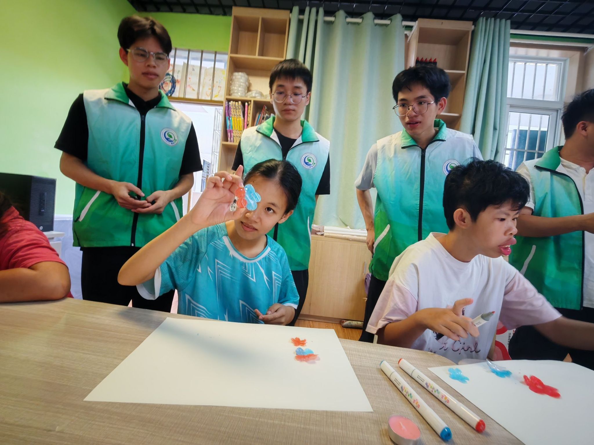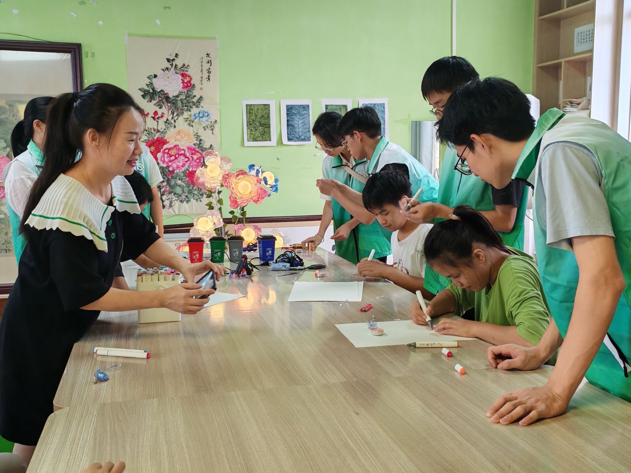 塑锦团队协教特殊教育学生完成花朵