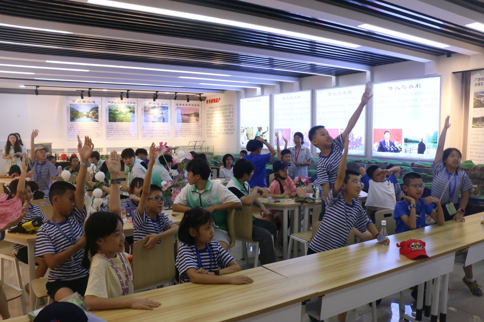 在空天地一体教室,党员志愿者通过三维地形沙盘和AR技术,生动演示了等高线原理和地理信息技术在防洪减灾中的应用,研学团队的小学员们怀着浓厚的兴趣体验了无人机虚拟仿真操作系统。在安全教育馆内,支部党员们通过互动展具和情景模拟,开展了一场别开生面的安全科普教育。小学员们通过VR设备体验了车辆安全驾驶模拟,在虚拟灭火仿真系统中学习消防知识,在安全带体验装置上感受安全防护的重要性。这种沉浸式的安全教育方式,让安全知识更加深入人心。在创意工坊,小学员们在志愿者的耐心指导下,用废旧空塑料瓶,制作出水滴、浪涛等富有水利特色的手工艺品。这一环节不仅培养了孩子们的动手能力和环保意识,更让他们在创作过程中加深了对水资源保护的理解。