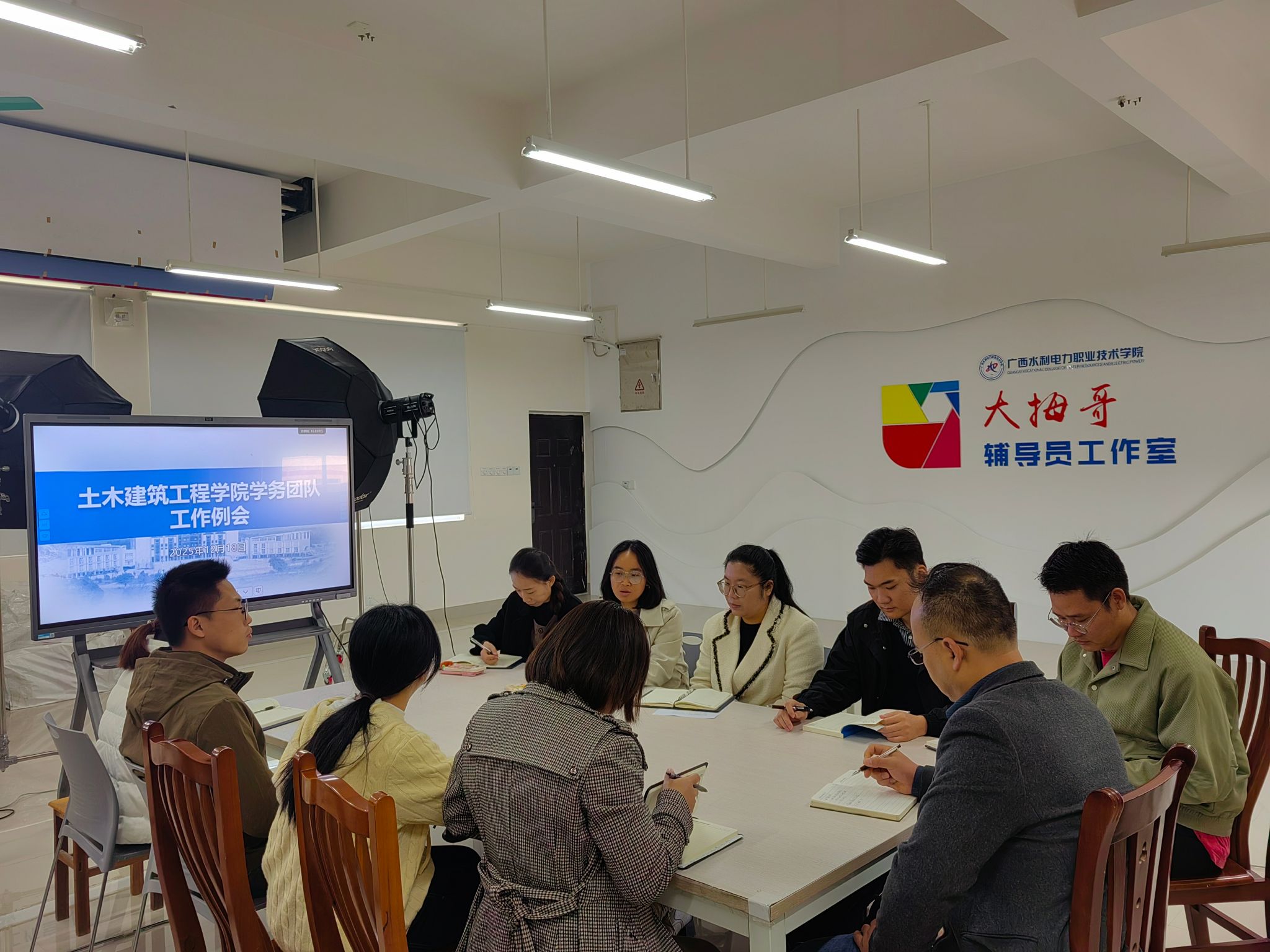 学务例会在里建校区建筑实训楼303办公室召开