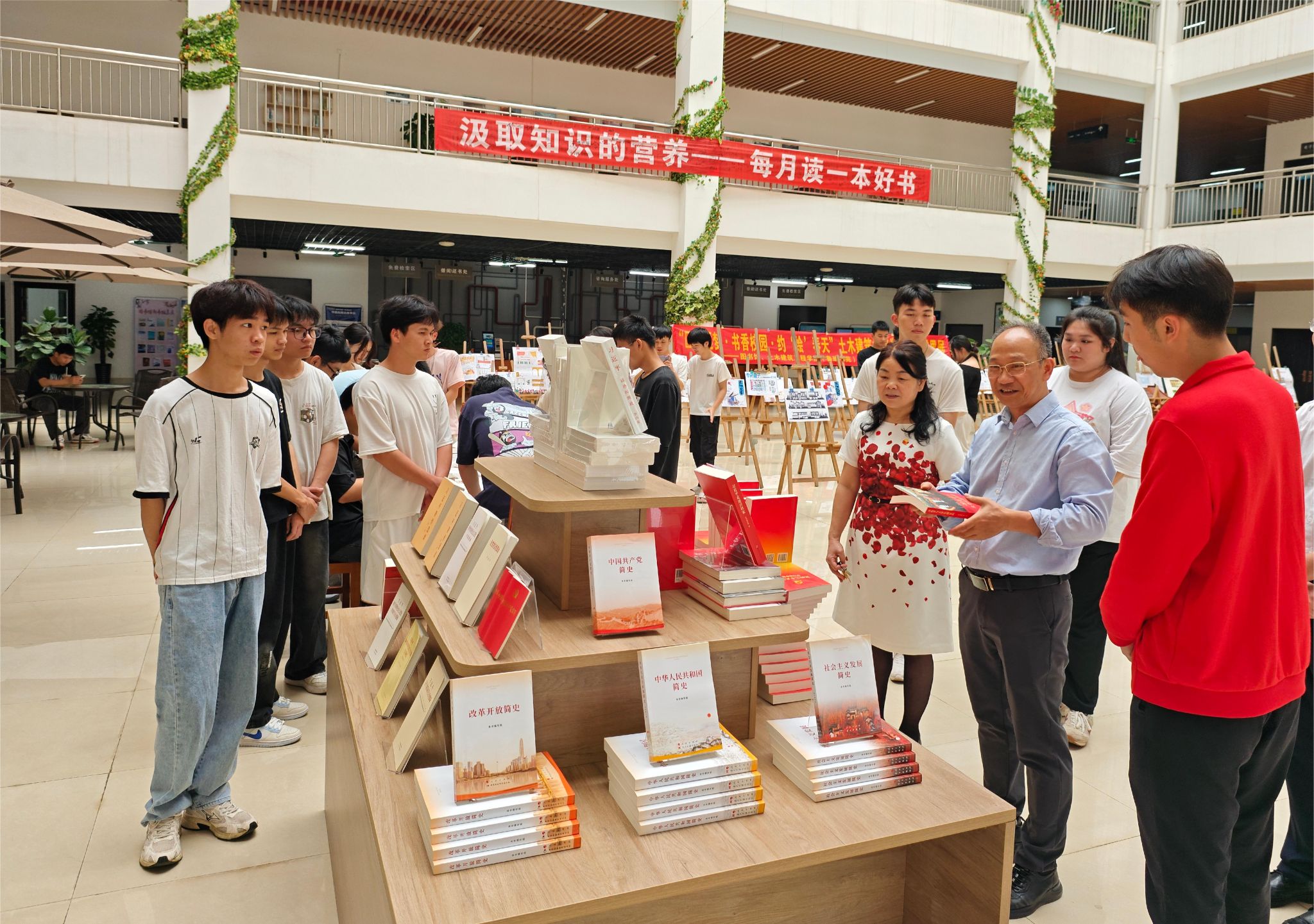 活动现场设置了红色书籍展览,整齐陈列了许多红色经典著作。新华书店静湖书苑店长黄炳坤着重给师生介绍了“四史”读本、《习近平与大学生朋友们》《习近平的七年知青岁月》等书籍,对这些书籍进行了深入浅出的讲解,使师生们对祖国发展与历史有了更加深入的了解,增强了历史意识和文化自信。