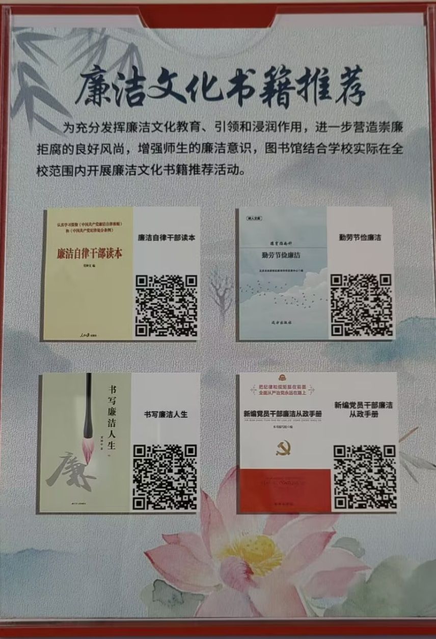 图书馆快速响应,积极发挥图书馆文化育人主阵地作用,充分发掘丰富的馆藏资源,精心挑选一批富有代表性的廉洁文化优秀电子书籍,制作成宣传海报,利用学生公寓图书馆宣传栏,在里建校区各学生宿舍区进行广泛深入的宣传教育,通过“送书上门”的方式,借优秀书籍的引领之力,引导广大师生厚植廉洁文化底蕴,大力营造以清为美、以廉为荣的良好风气。(谭柳青/图文)