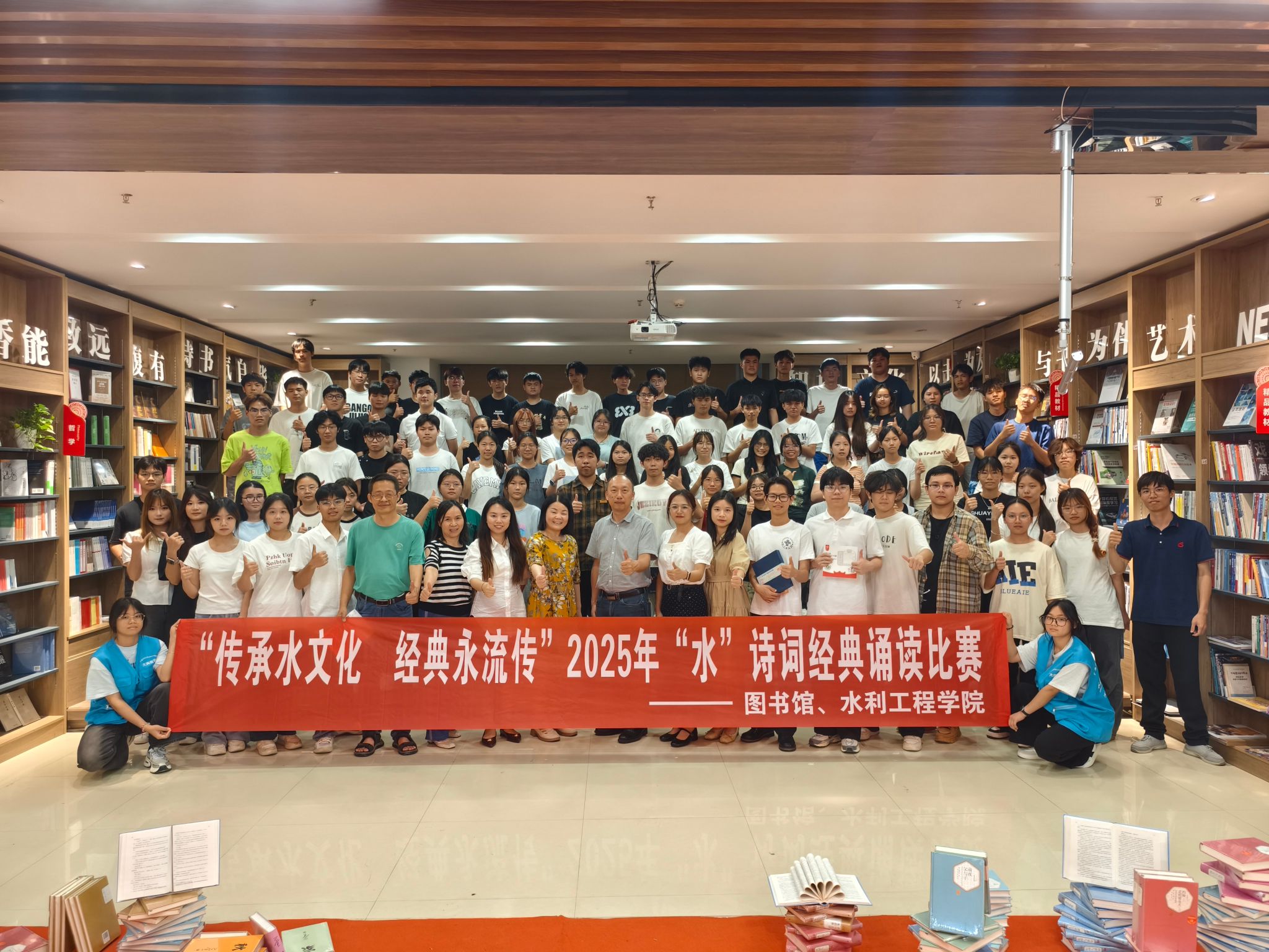 [本网讯]6月4日晚,由图书馆与水利工程学院联合主办的2025年“水”诗词经典诵读比赛在里建校区图书馆静湖书苑圆满落幕。作为学校“善水文化”品牌活动的重要组成部分,同时也是今年“读书月”的特色活动。本次比赛吸引了全校40个班级、120支队伍、570余名学生参与,经过初赛激烈角逐,最终12支优秀队伍晋级决赛。