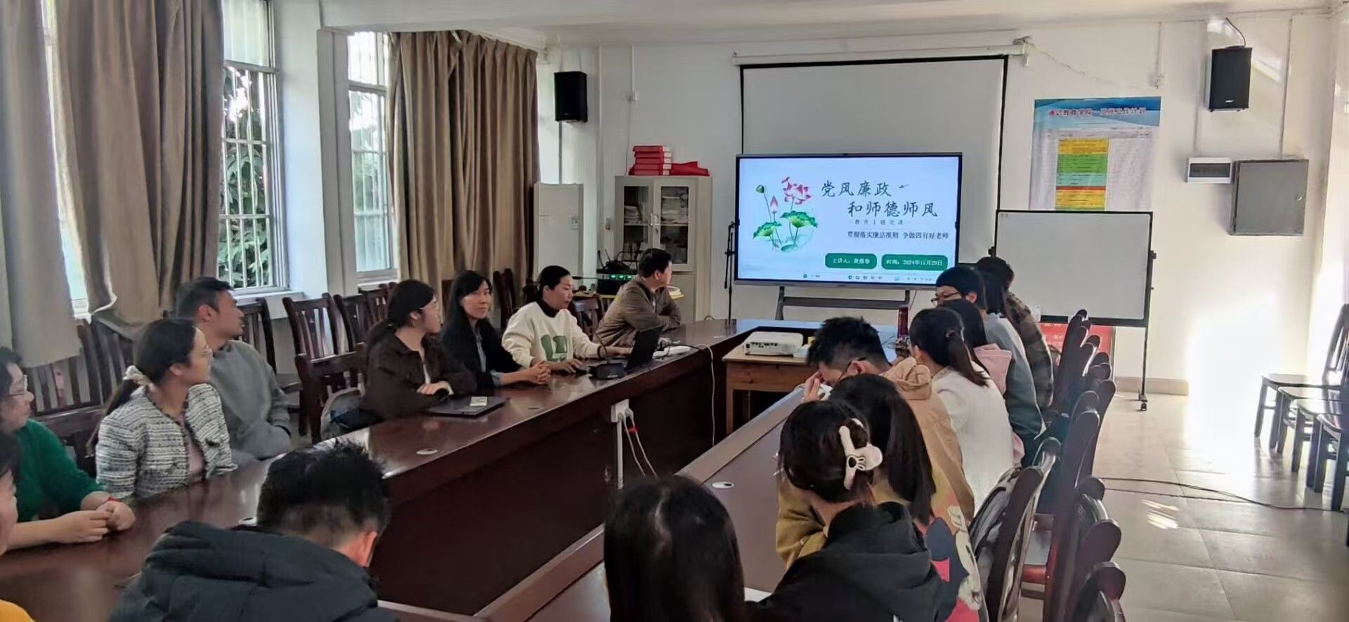 [本网讯]为进一步增强高校教师的廉洁自律意识,提高新形势下党风廉政和师德师风建设的针对性和实效性,11月29日下午,通识教育学院党支部在长堽校区综合楼三楼会议室开展党风廉政建设和师德师风教育主题党课,活动由党支部书记韦嵚主持,支部全体党员参加本次活动。