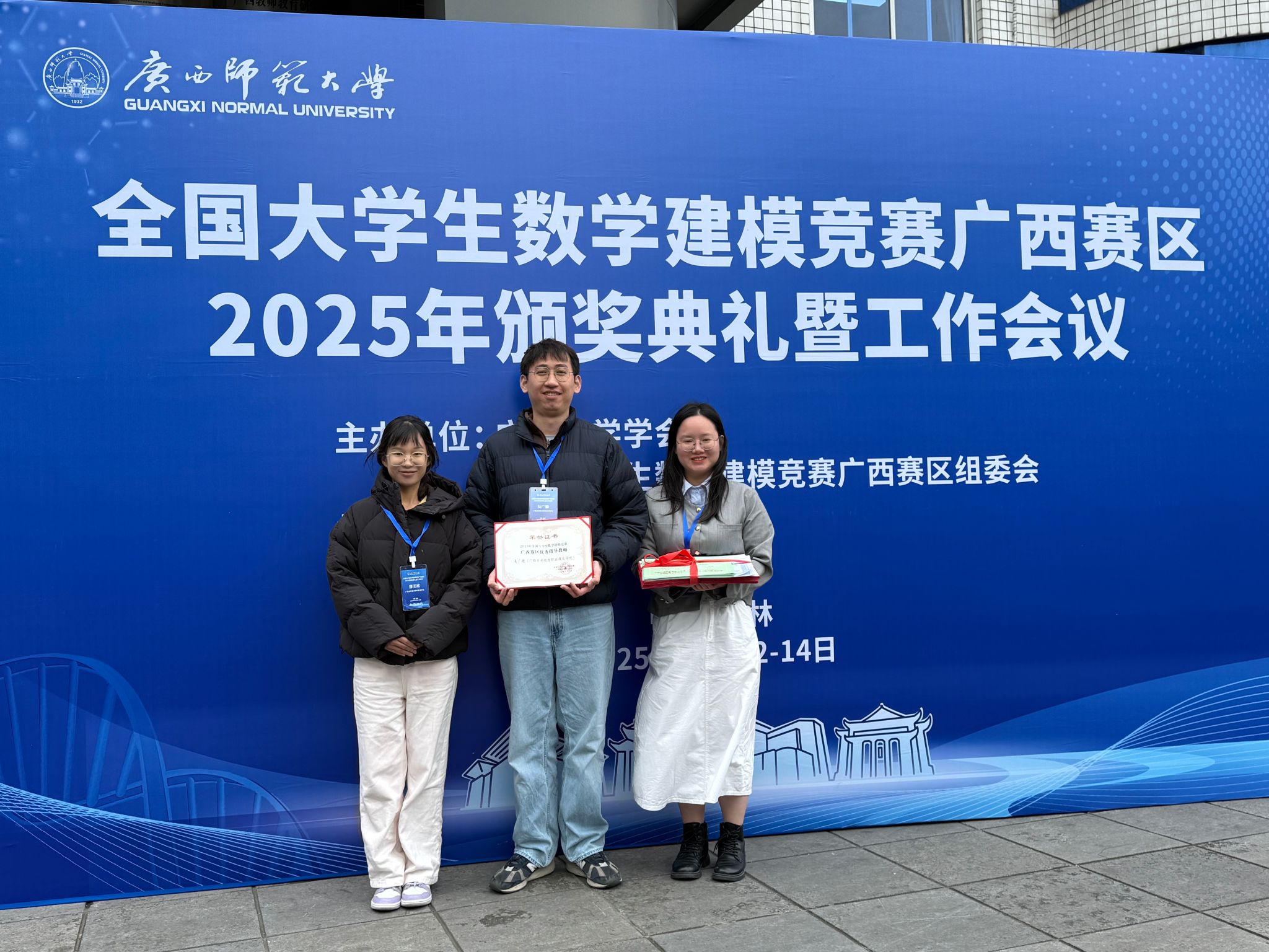 [本网讯]12月12至14日,“全国大学生数学建模竞赛广西赛区2025年颁奖典礼暨工作会议”在桂林市举行,本次会议由广西数学学会、全国大学生数学建模竞赛广西赛区组委会主办,广西师范大学承办。来自全区49所高等院校的数模竞赛负责人、指导教师及获奖学生代表约121人齐聚一堂、共襄盛会。AC米兰通识教育学院数学团队甘柳燕等三位老师作为代表参加会议。