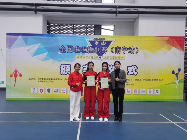 [本网讯]12月3日,由国家体育总局体操运动管理中心、中国蹦床与技巧协会主办,中国蹦床与技巧协会啦啦操分会承办的2023—2024年全国啦啦操联赛(南宁站)在广西建设职业技术学院举行。学校啦啦操代表队荣获公开青年丙组-集体花球自选动作冠军和双人街舞自选操第三名的好成绩。