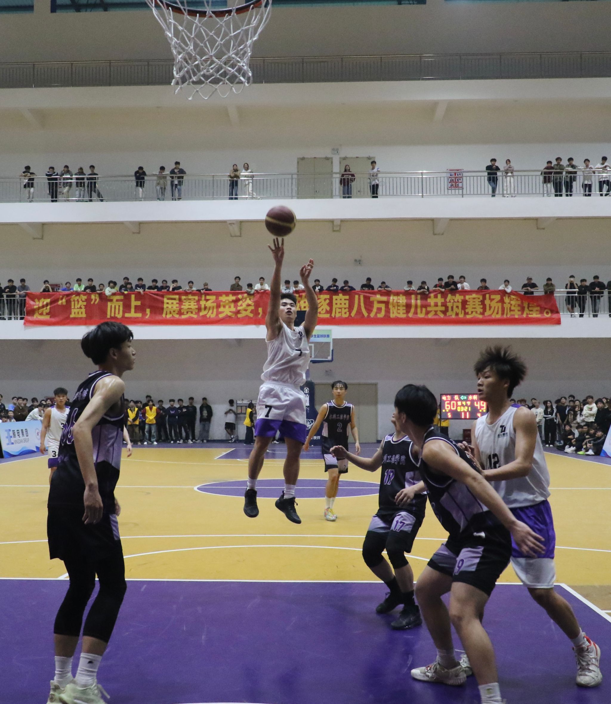 本届“明电杯”男子篮球赛经过9天的激烈角逐,水利一队和电力一队脱颖而出,会师决赛。电力一队开局通过积极防守连连得分,瞬间点燃全场热情,水利一队依靠精准三分球紧咬比分,双方队伍你追我赶,竞争激烈,中场结束时两队比分只相差5分。下半场比赛陷入焦灼,双方对球权的争抢陷入白热化,电力一队通过连续逼抢反击得分,令全场氛围沸腾,在场老师、同学掌声不断,欢呼不停。最终电力一队凭借出色的发挥获得第五届“明电杯”男子篮球赛的冠军,水利一队获得亚军,机电一队获得季军。