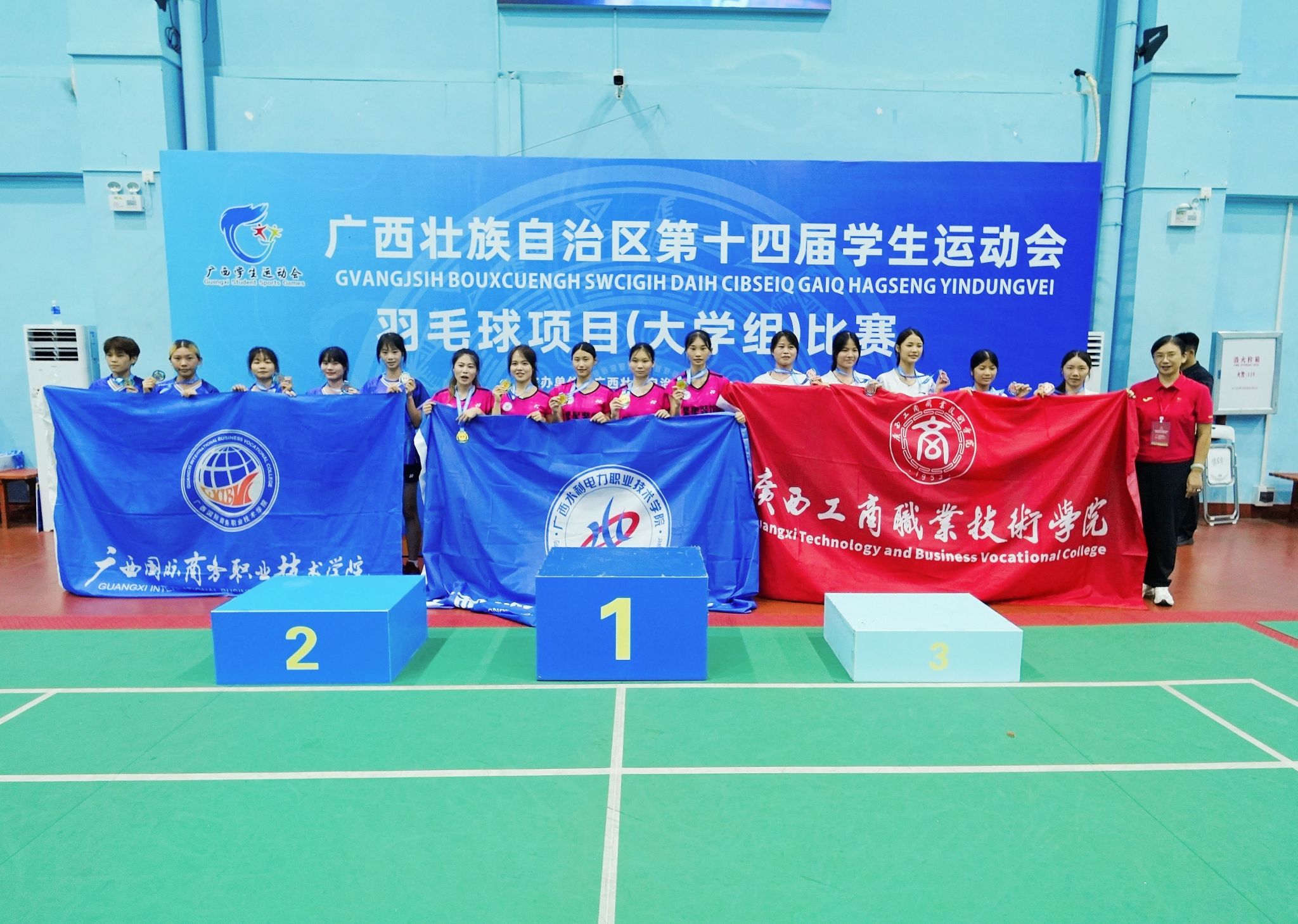 学校荣获广西第十四届学生运动会羽毛球比赛(高职高专组)女子团体第一名