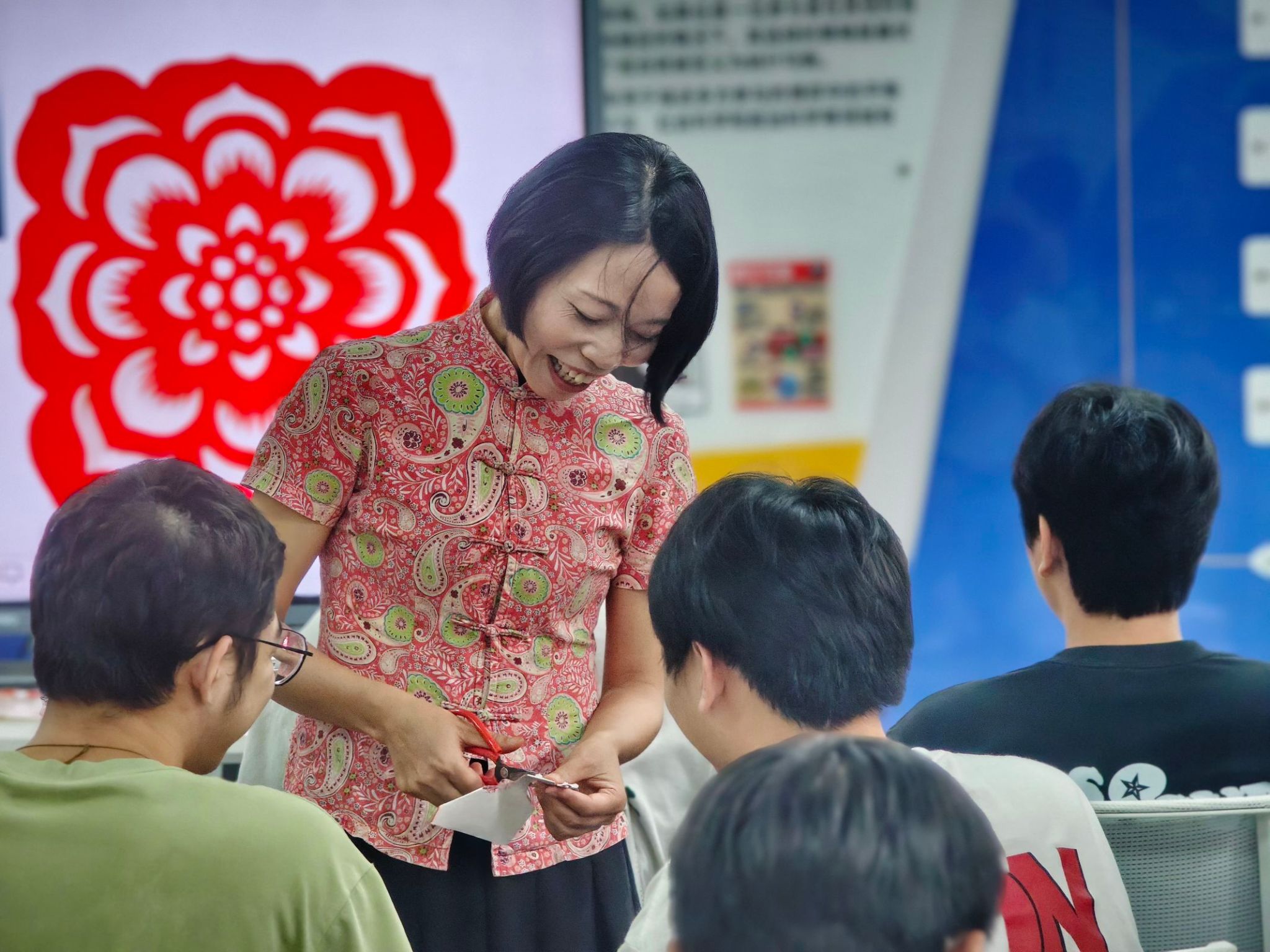 指导学生剪纸实操现场