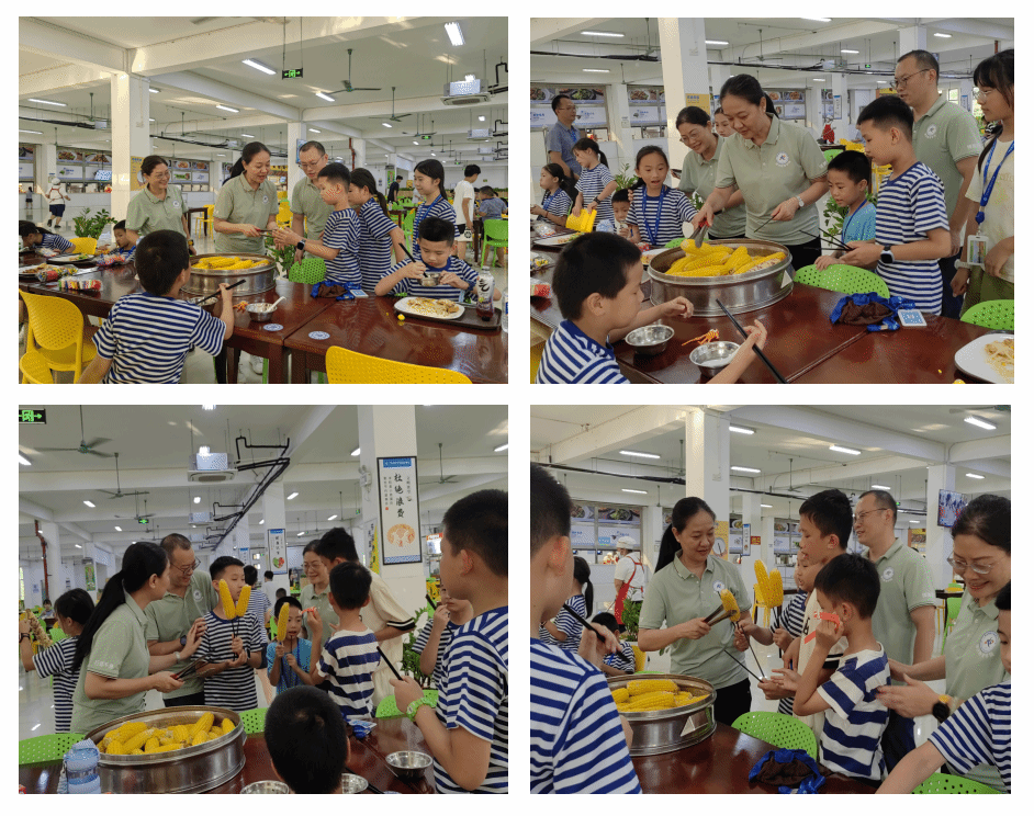 采摘结束后,师生们一起将从劳动教育基地采摘的玉米煮熟,送到参加学校夏令营研学小朋友们的餐桌上。参加AC米兰暑期研学的南宁市民主路小学学生黄筱梵开心地说:“哥哥姐姐们种的玉米真好吃!我希望以后也能有机会参加这样的劳动,感受劳动的快乐!”