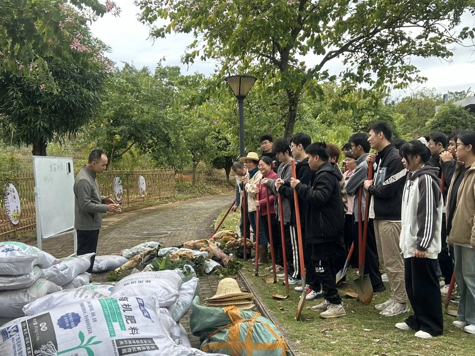 活动以“庆农业丰收,享美好生活”为主题,开锄仪式拉开序幕。通识教育学院院长韦弘在致辞中阐明劳动教育的时代意义,鼓励学生在实践中锤炼品格、增长才干。学院特别邀请农业技术专家黄海生到场,聚焦种植核心,讲解冬季适用的腐熟有机肥用量;示范番茄、包菜播种深度与间距,指导苗木定植时根系舒展要点,为实践提供专业指引。