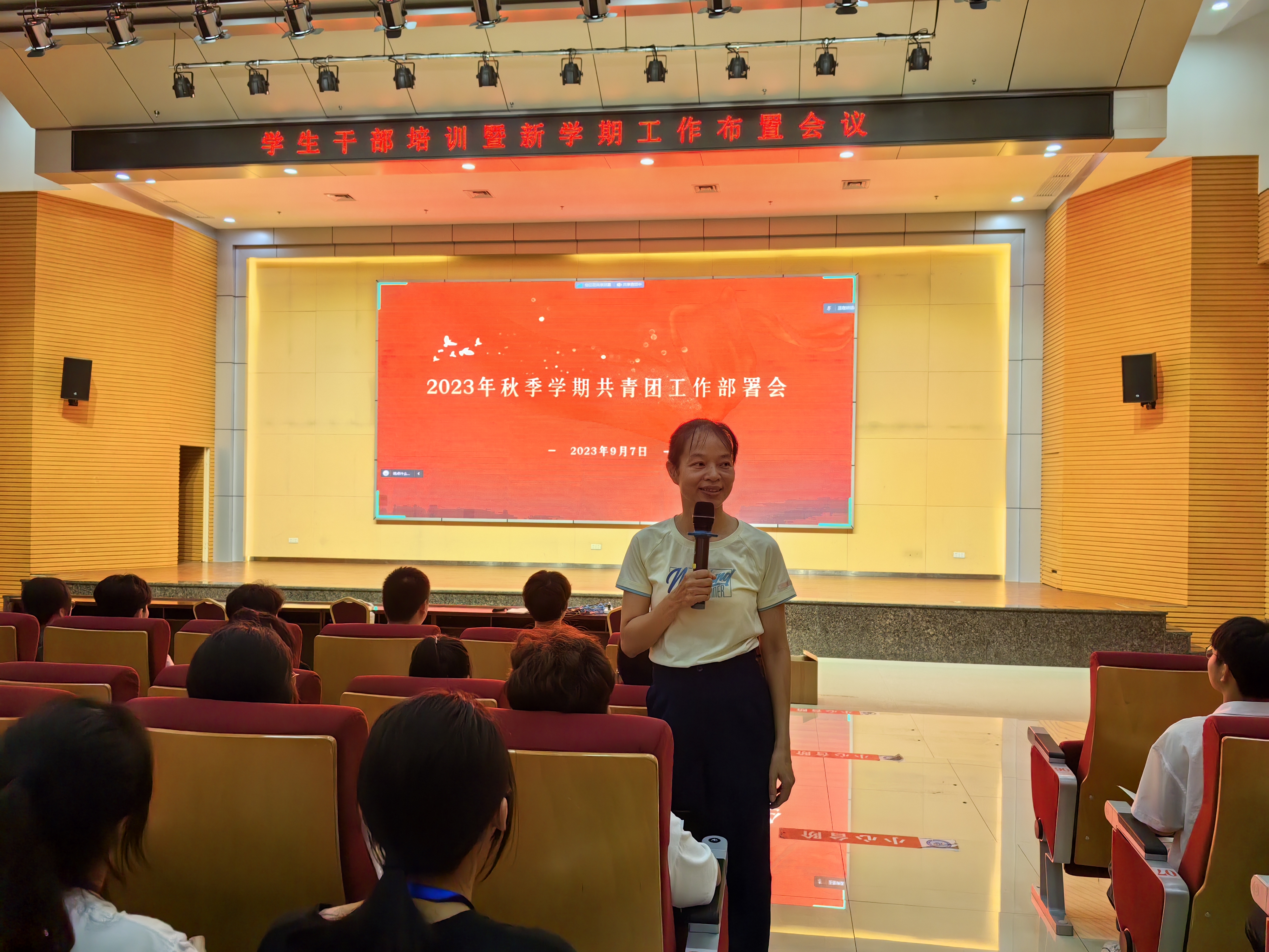 [本网讯]2023年9月7日晚,学校团委2023年秋季学期学生干部培训暨新学期工作布置会议在里建校区青年之家学术报告厅和长堽校区一教2-5教室同步开展。团委书记石春丽老师为校团委、学生会、社团负责人全体学生干部作培训。