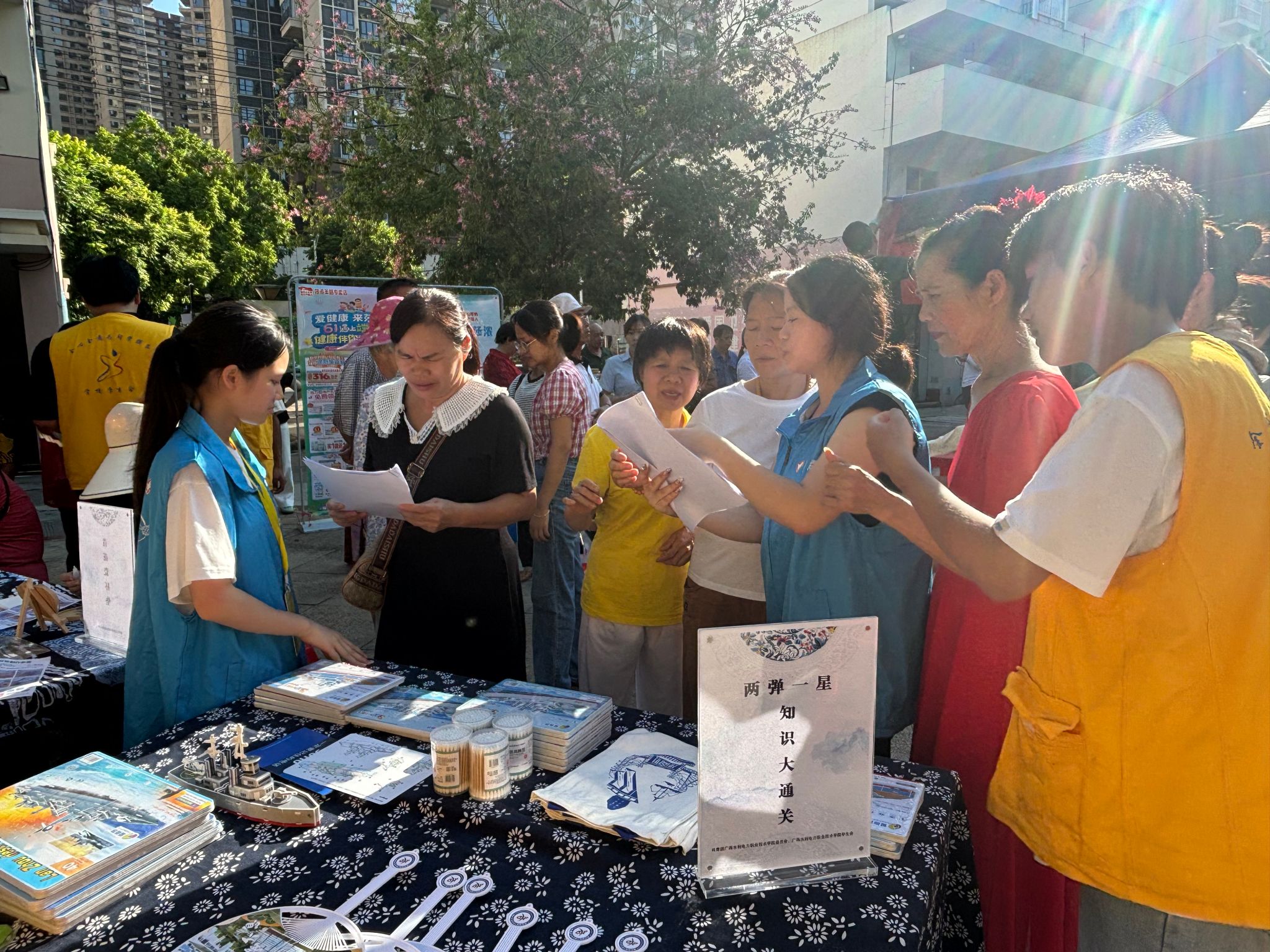[本网讯]9月28日清晨,广西-东盟经济技术开发区兴侨社区的文化广场上人头攒动,气氛热烈。学校星火传承——“两弹一星”精神志愿宣讲团在此成功举办了一场别开生面的“两弹一星”知识问答普及活动,将那段波澜壮阔的强国史诗与自立自强的科学精神,播撒进社区居民的心田。