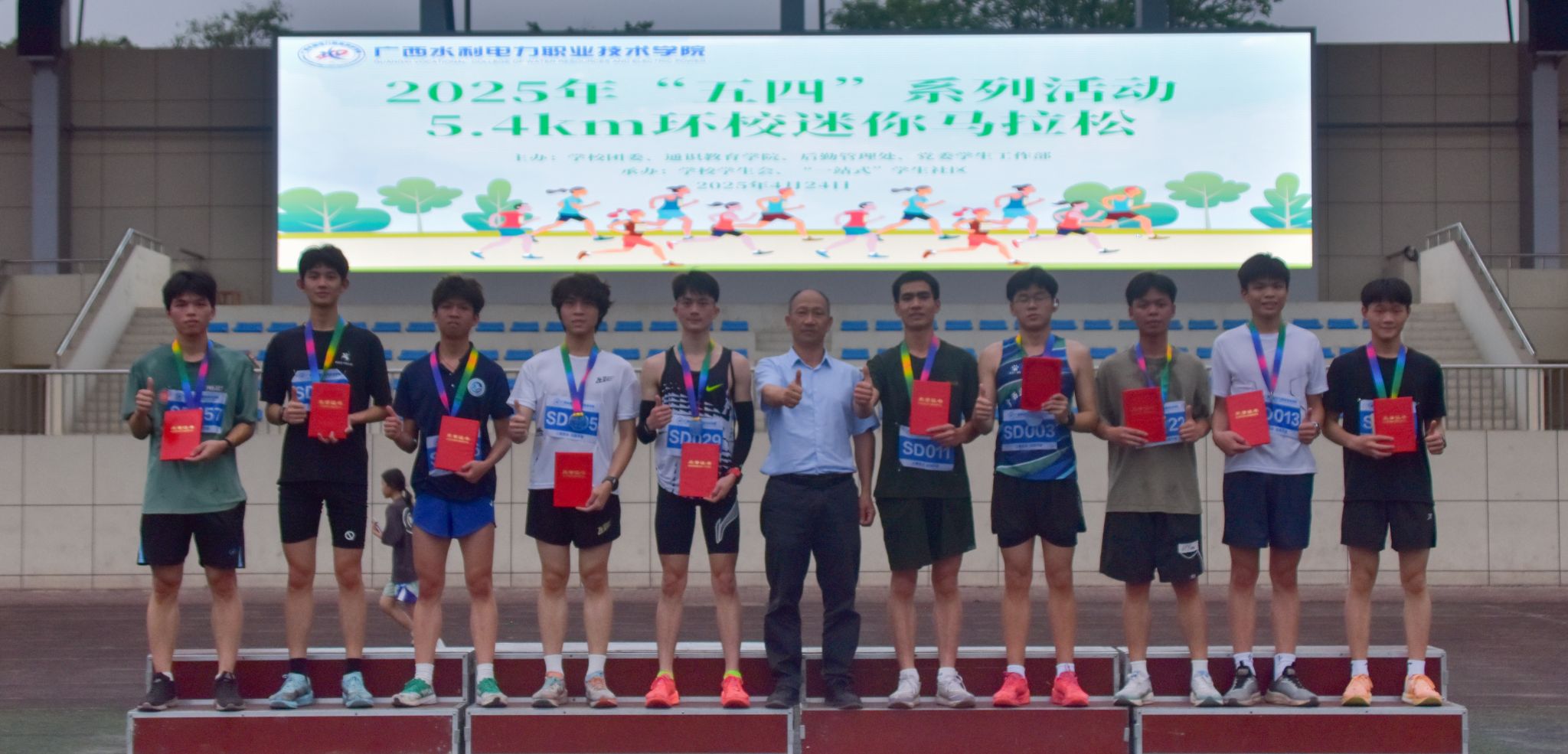 本次赛事的赛道全程5.4公里,巧妙融入校史地标与五四主题打卡点。参赛者途经“青年之家”时,校园广播同步播放《少年中国说》音频;在“创新创业园”路段,广播站朗诵《何以华夏,何以中华》,将体育竞技与红色教育有机融合。经过激烈角逐,来自电力工程学院23输配电2班的樊羿佟同学以18分58秒的成绩夺得第一名。颁奖环节别出心裁,奖牌将学校文化与五四精神有机融合。