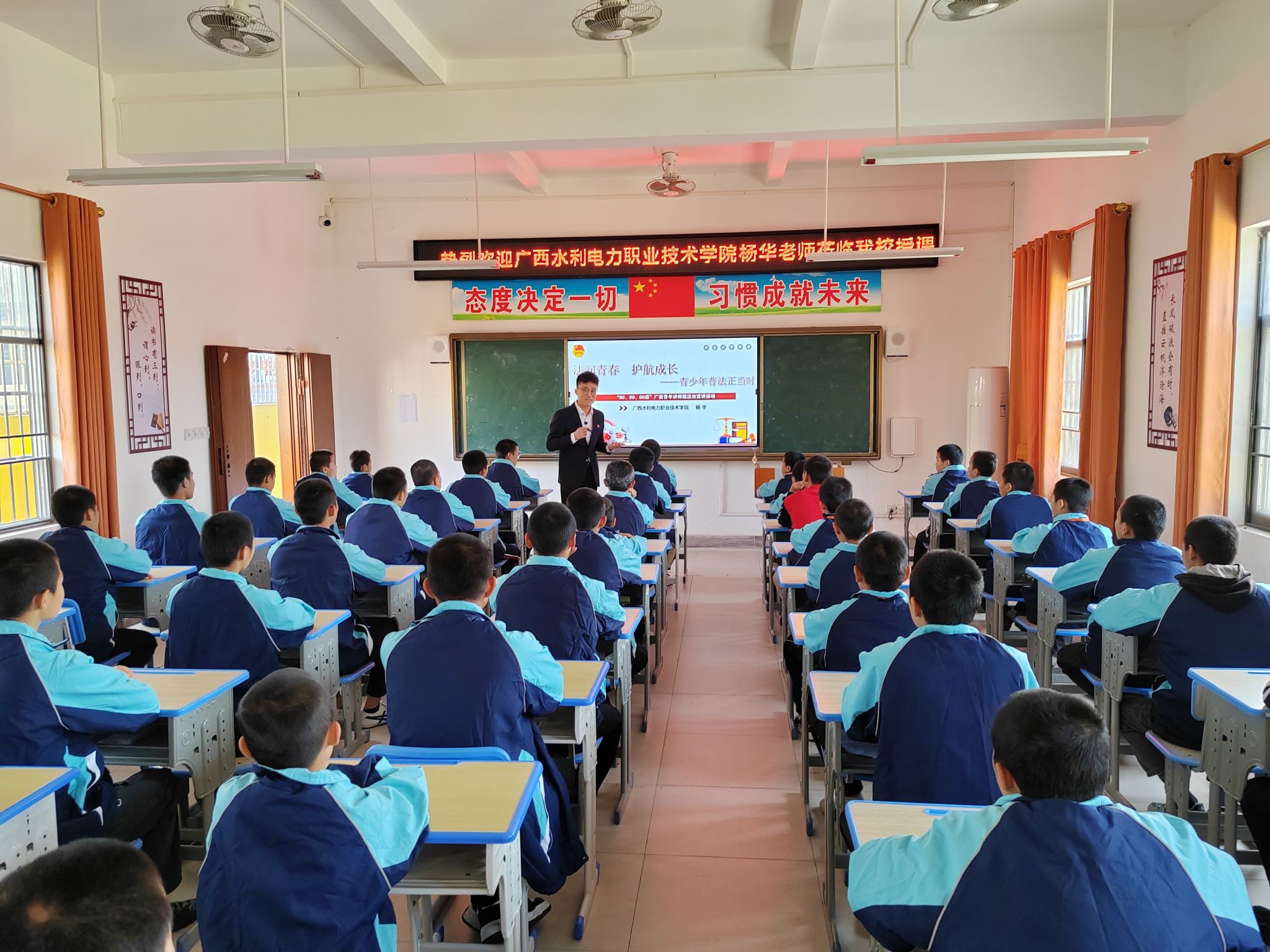 12月9日,“80、90、00后”广西青年讲师团走进兴业县第十二中学,以“法润青春 护航成长”为主题开展法治宣讲活动,通过案例解读与互动实践,为青少年带来一堂“听得懂、记得住、用得上”的法治必修课。团县委副书记陆俊成、该校50余名师生共同参与活动。