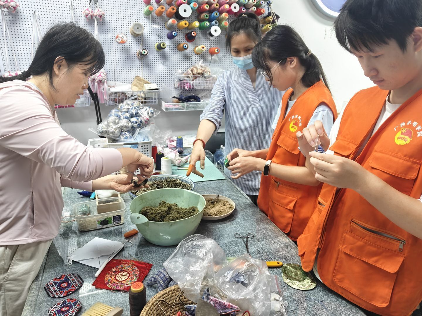 [本网讯]6月14日,在世界文化遗产日当天,信息工程学院党总支组织学院青年学生走进广西壮族非遗传承文化人朱少燕工作室,开展了一场别开生面的非遗文化体验互动,深度感受壮族传统手工艺 “麽乜” 的独特魅力,在实践中增强文化传承意识。