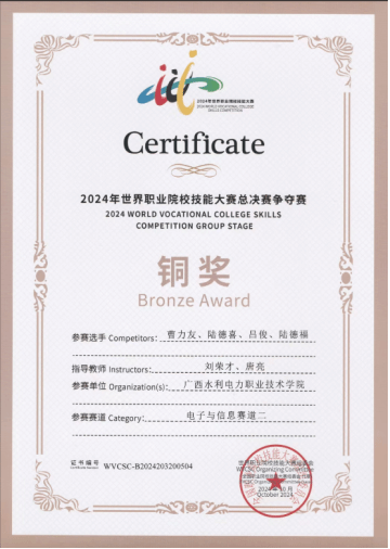 吴润祥:在校期间荣获广西职业院校技能大赛《信息安全管理与评估》一等奖(广西第一),现就职于广西新闻出版技工学校,凭借丰富的专业知识和实践经验,指导学生多次获奖,为职业教育事业贡献力量。