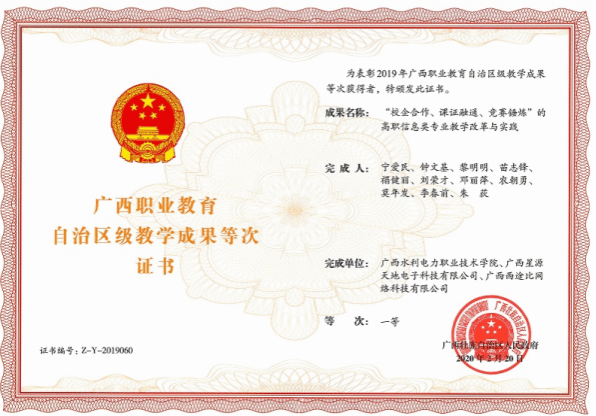 1.网络系统管理:在广西职业院校技能大赛中,《网络系统管理》项目连续 9 年荣膺广西第一,在国赛中斩获二等奖 4 项、三等奖 4 项。