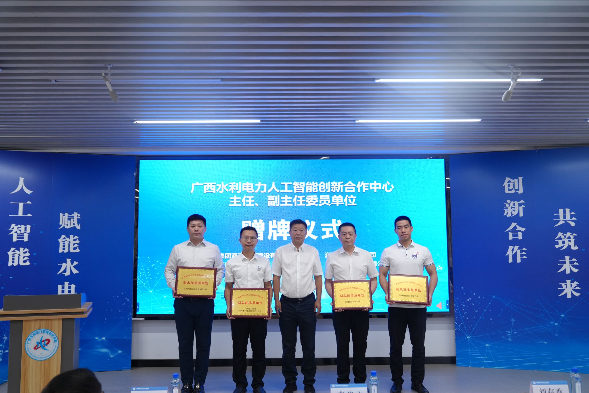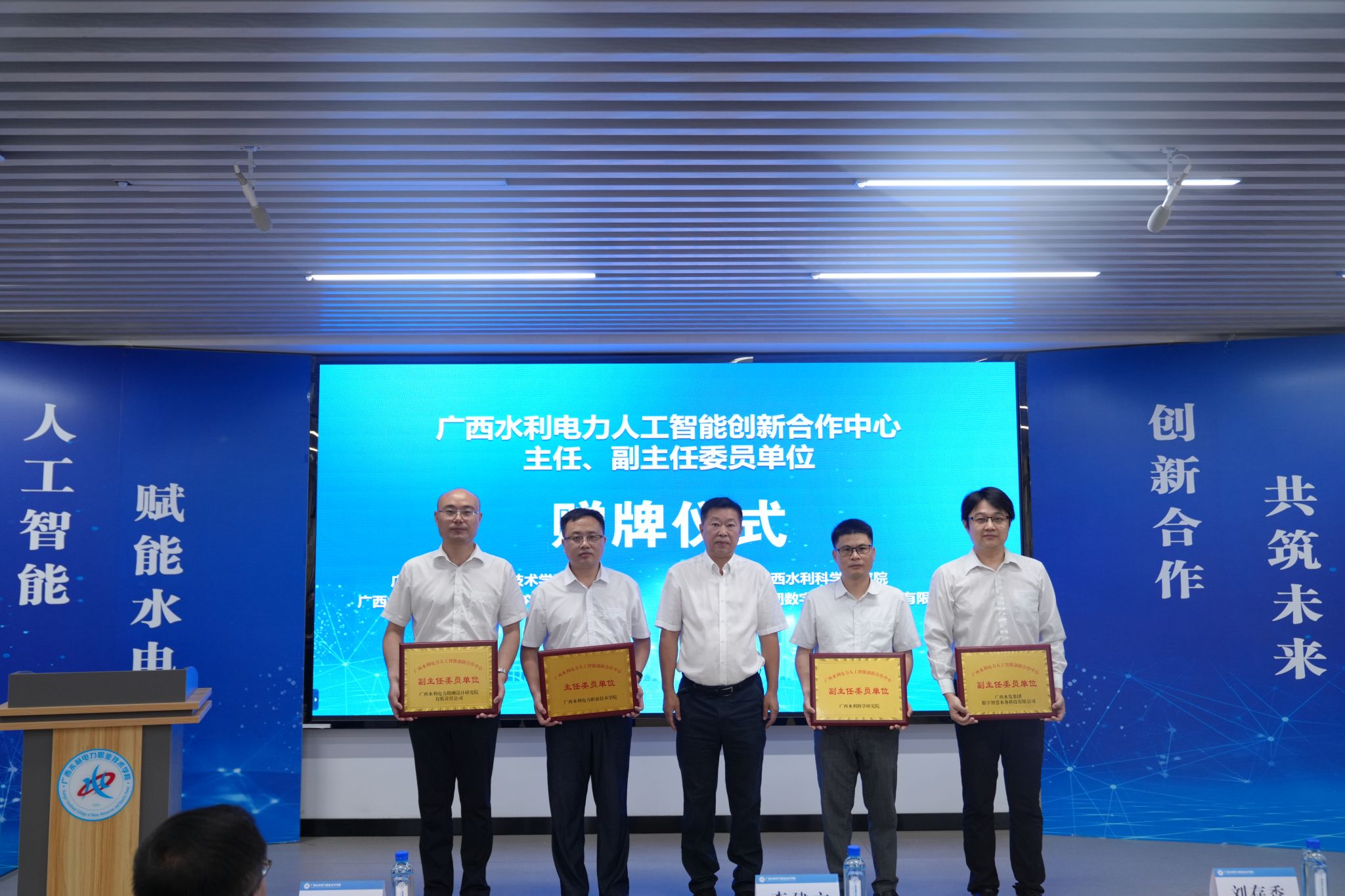 随后,李建文、李林共同为广西水利电力人工智能创新合作中心揭牌,刘存香与广西水利科学研究院等公司代表为人工智能产业学院揭牌,李建文为人工智能创新合作中心主任委员单位、副主任委员单位赠牌。