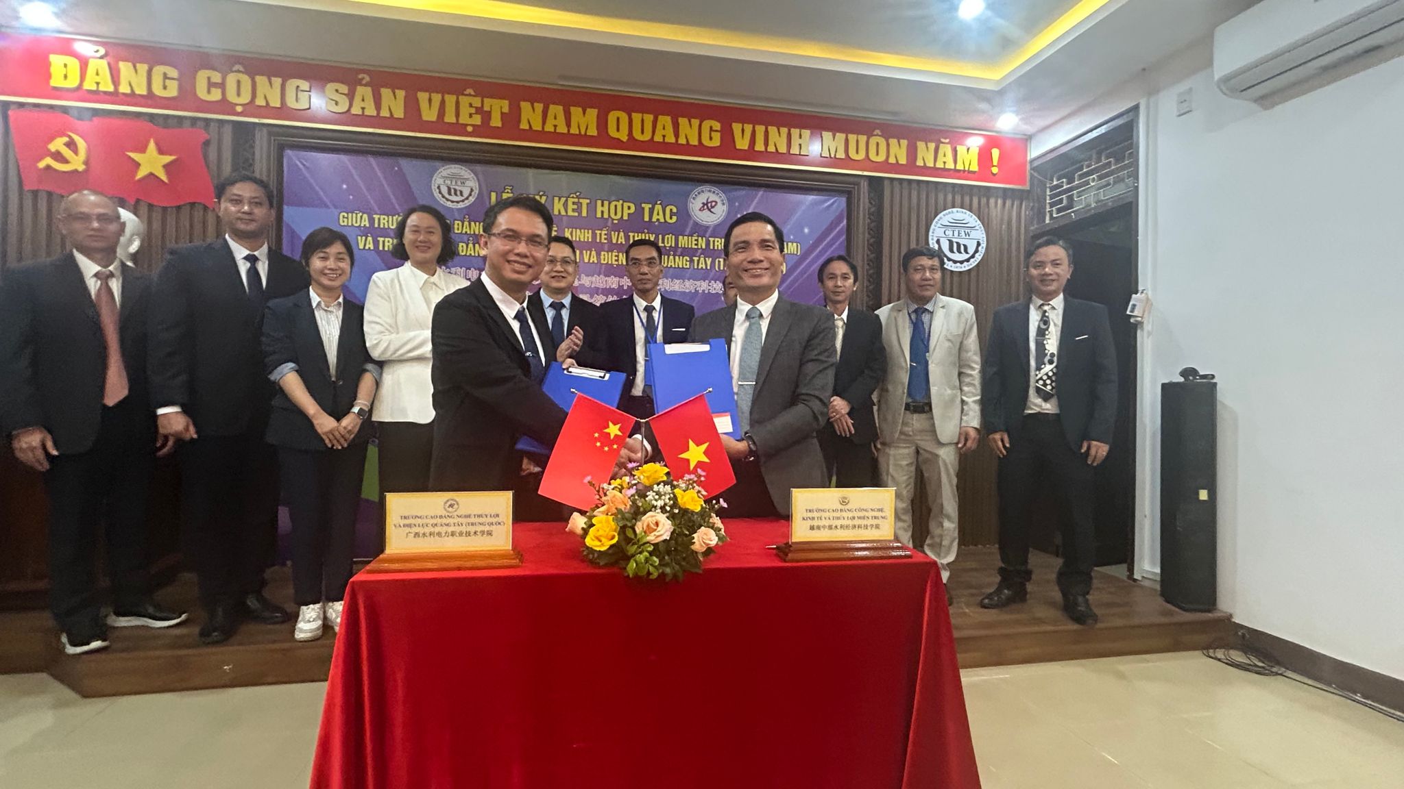 During the visit to Vietnam, the delegation toured and exchanged ideas with the Electric Power University, the Vietnam-America College Hanoi, and the Central College of Technology, Economics and Water Resources. At the Central College of Technology, Economics and Water Resources, the delegation was warmly received by the Party Secretary and President Le Ngoc Nguyen, along with the leadership team, heads of functional departments, and various department leaders, who accompanied the delegation on a tour of the campus and training facilities. Both parties reviewed their cooperative history since the 1980s and engaged in in-depth discussions on faculty training in water resources and electric power, as well as cultural exchanges. A Memorandum of Understanding (MoU) was signed by the two institutions, reaching cooperative intentions on matters such as international student recruitment, scientific research collaboration, and credit exchange.