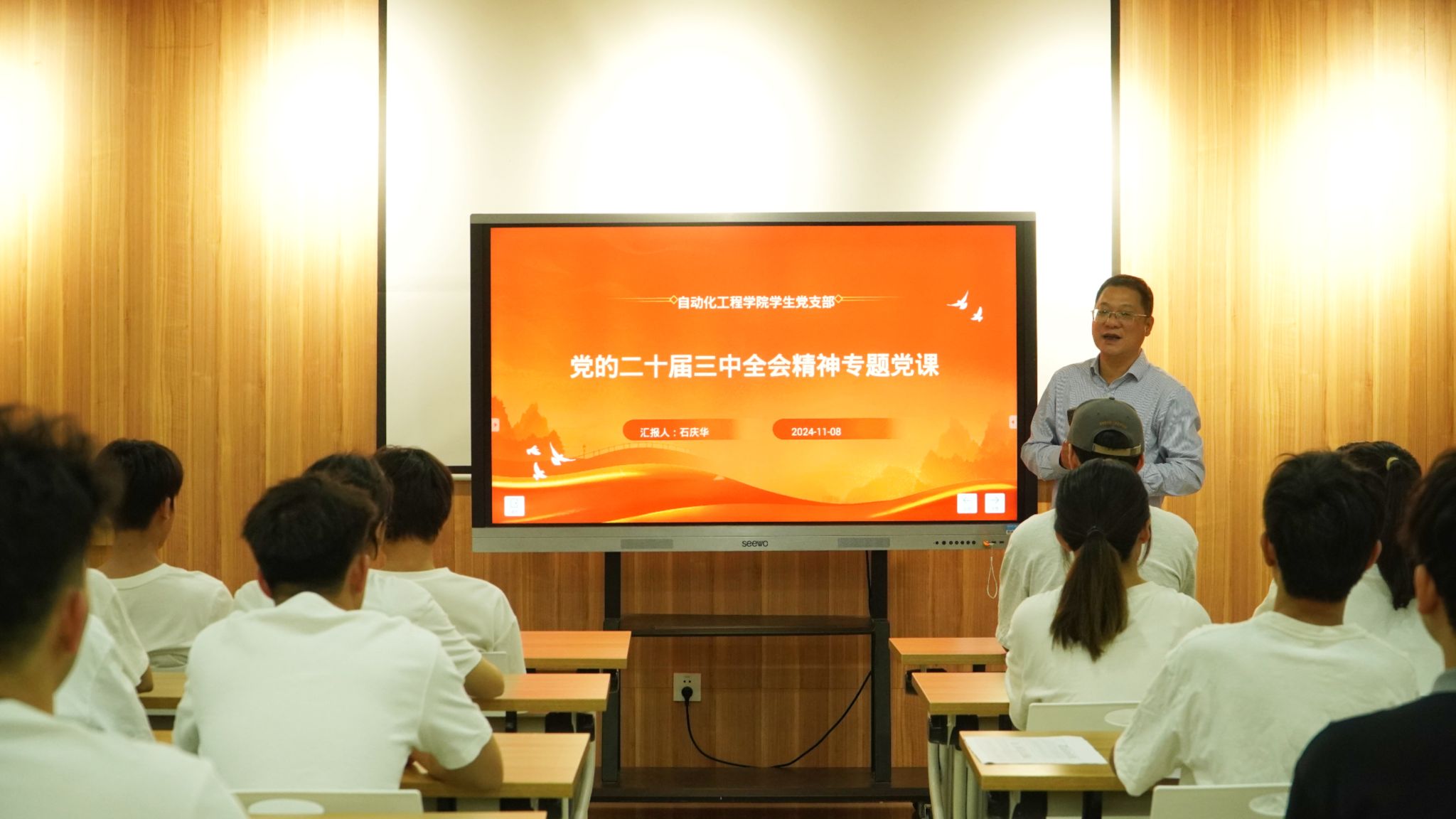 【本网讯】11月9日,自动化工程学院学生党支部组织开展了一场以“深入学习贯彻党的二十届三中全会精神”为主题的专题党课。此次党课由自动化工程学院党总支书记石庆华老师主讲,旨在为进一步加强学生的思想政治建设,提升支部凝聚力与战斗力。