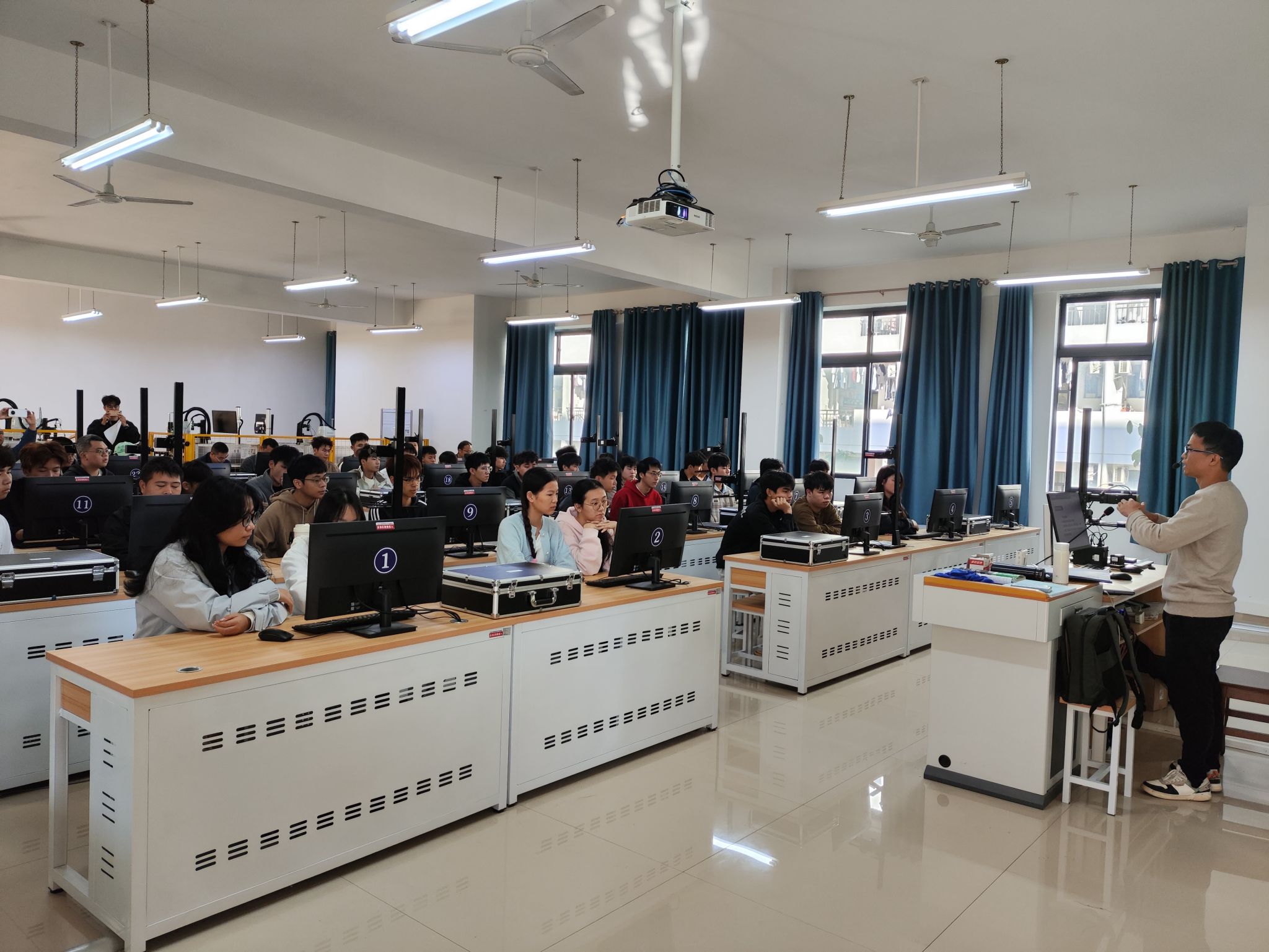 [本网讯]为提升教师教学能力与课堂质量,2025年11月26日上午,自动化工程学院组织开展了《机器视觉技术》院级公开课。本次公开课由杨振华老师主讲,学院副院长郭平、教学督导姚开武以及电气专业团队负责人甘文等10多名专业教师参与现场观摩。