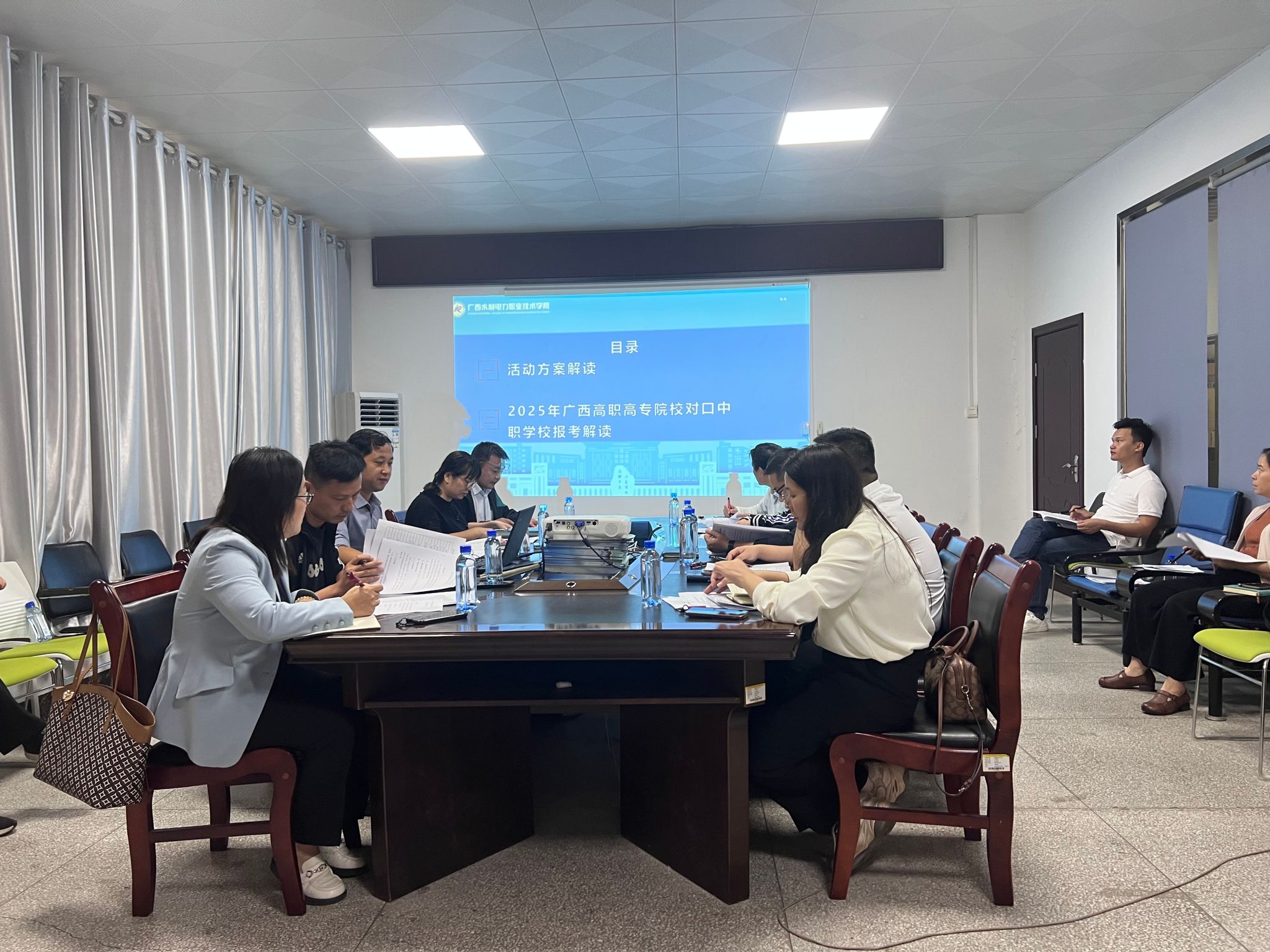 随后,招生科科长石峰就2025年广西高职高专分类考试招生政策新变化进行了解读。各二级学院参会人员就本次会议内容展开讨论。