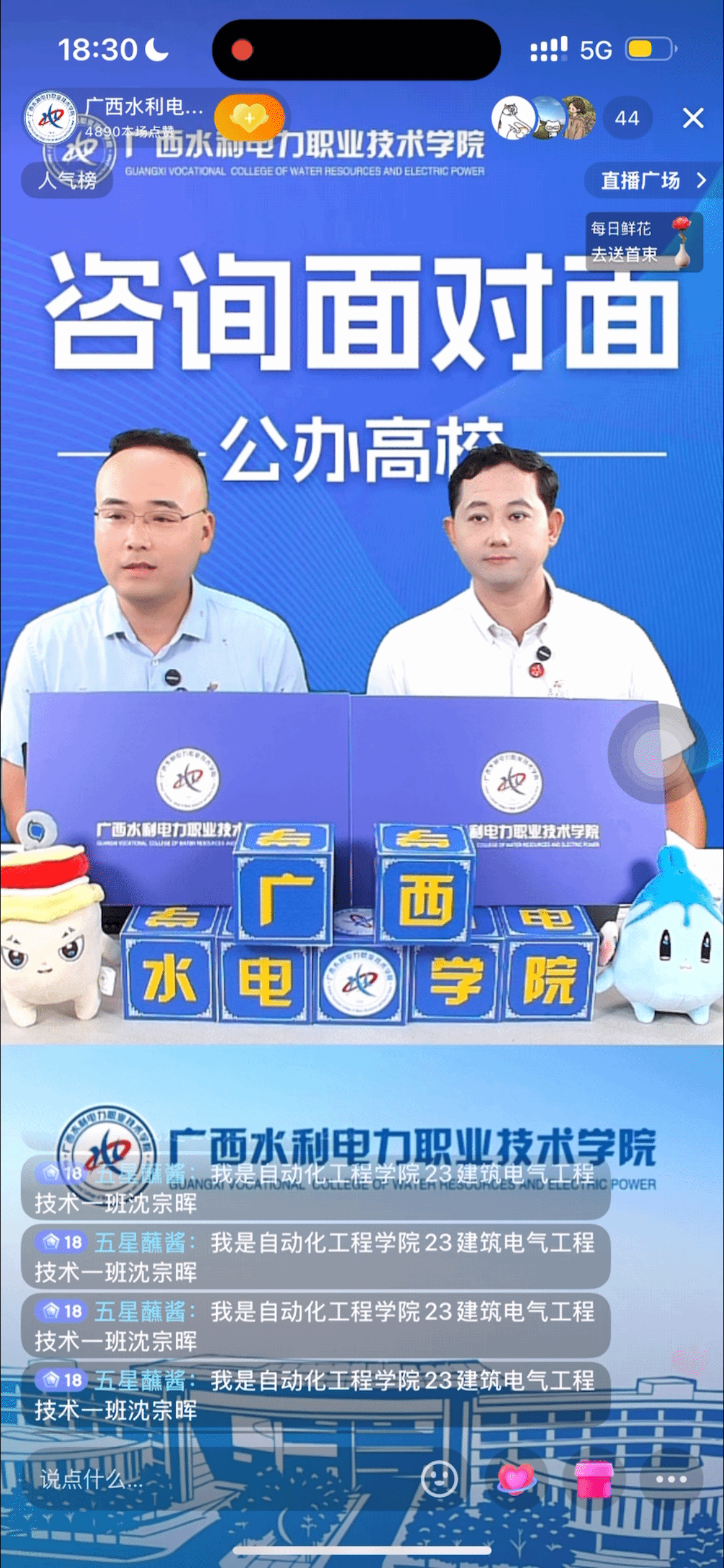 直播现场,招生与就业处处长邓佳富、土木建筑工程学院党总支书记梁中超以主播的身份介绍了学校2025年普通高考招生的政策要点,包括招生计划、报考条件、录取规则等考生及家长关注的信息。同时,他们还围绕学校的办学历程、专业设置、教学资源、实训条件、就业前景、校园环境等方面展开介绍和问答,让考生及家长对学校有更全面深入的了解。