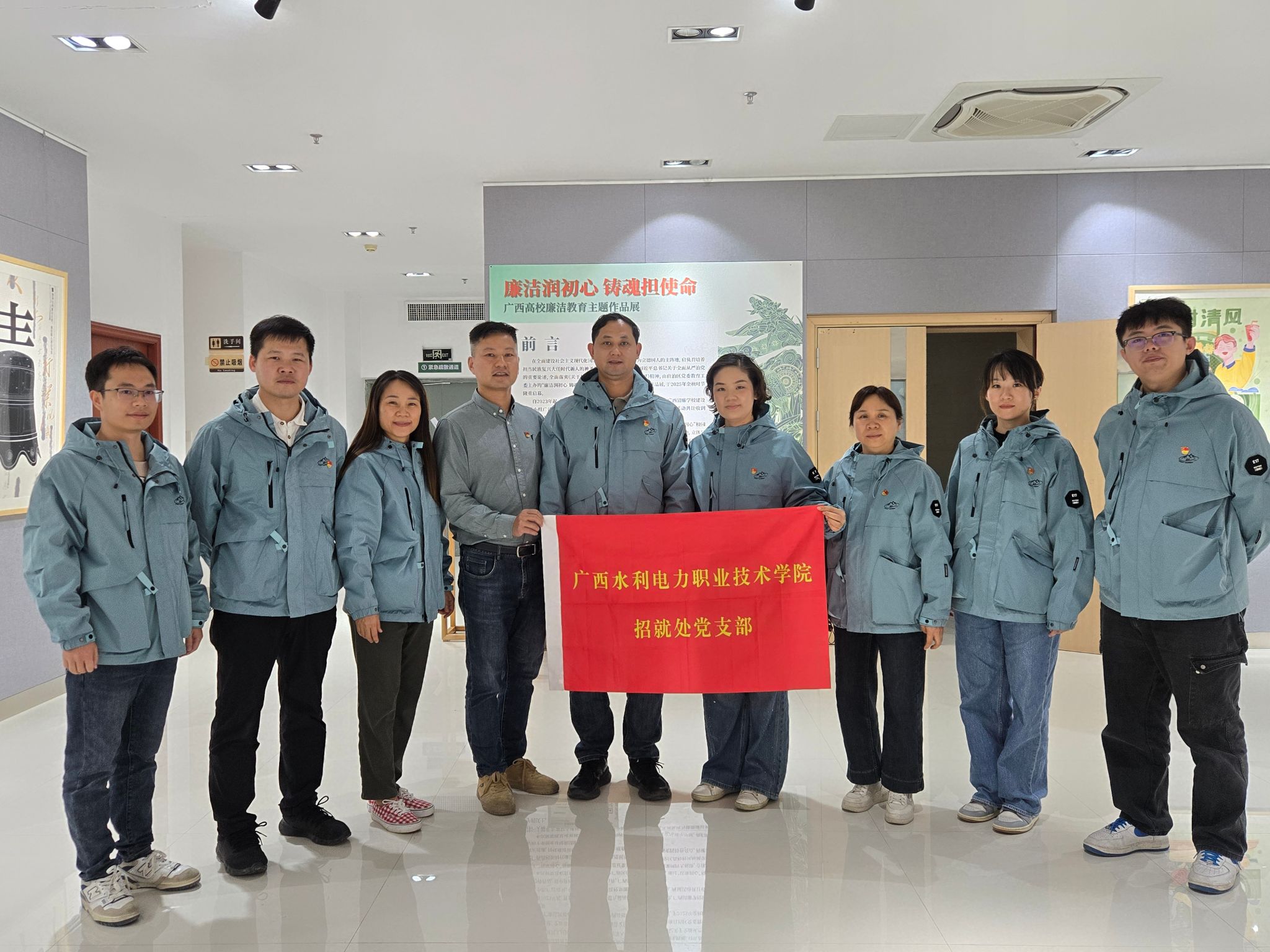 为深入学习贯彻习近平新时代中国特色社会主义思想,全面落实新时代廉洁文化建设要求,切实将廉洁自律意识融入招生就业工作全过程,筑牢招生录取、就业服务中的纪律防线,招生与就业处于11月14日下午组织全处工作人员前往广西艺术学院相思湖校区,集中参观“廉洁润初心 铸魂担使命”——广西高校廉洁教育主题作品展。招生与就业处处长邓佳富同志带队参加活动。
