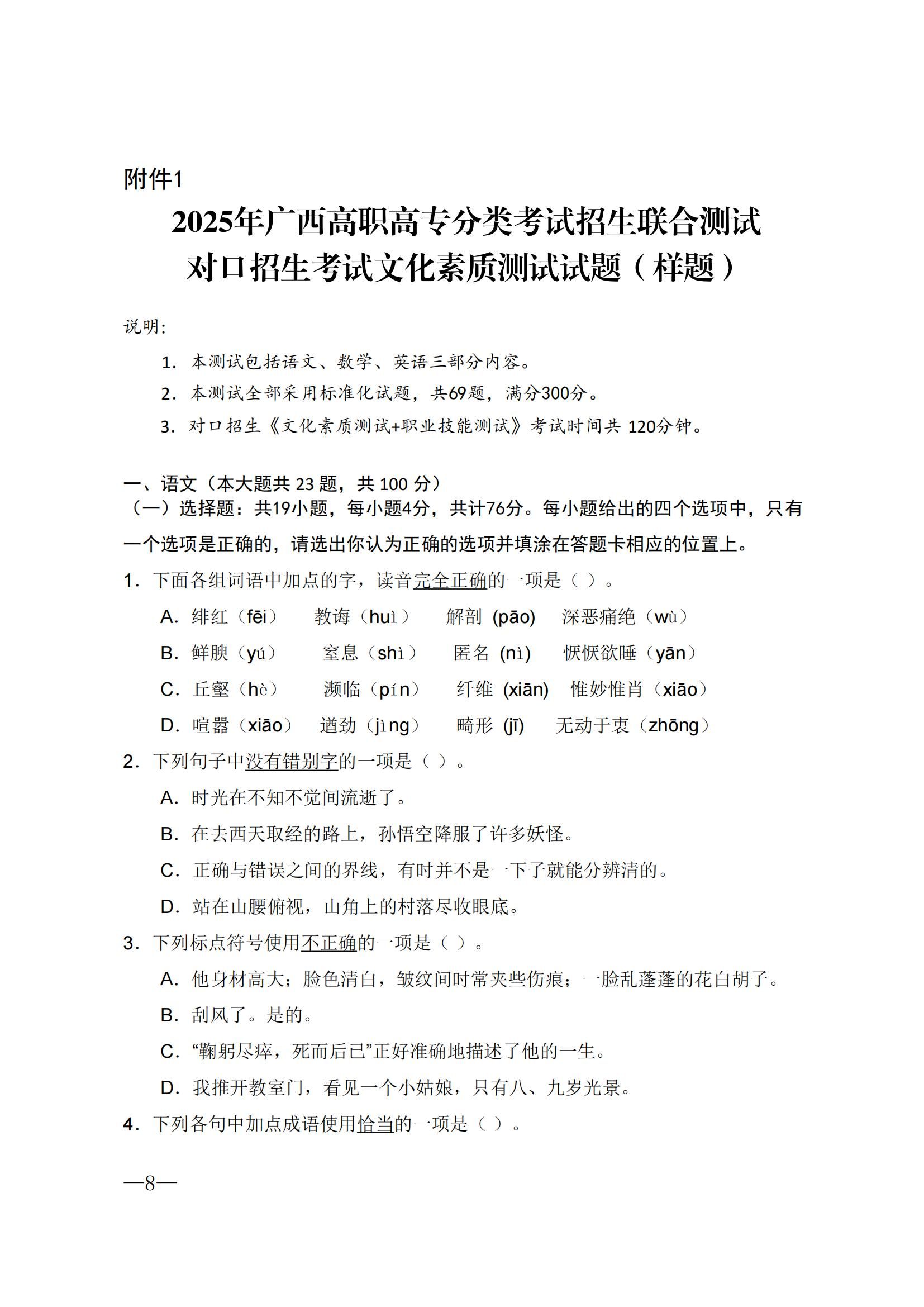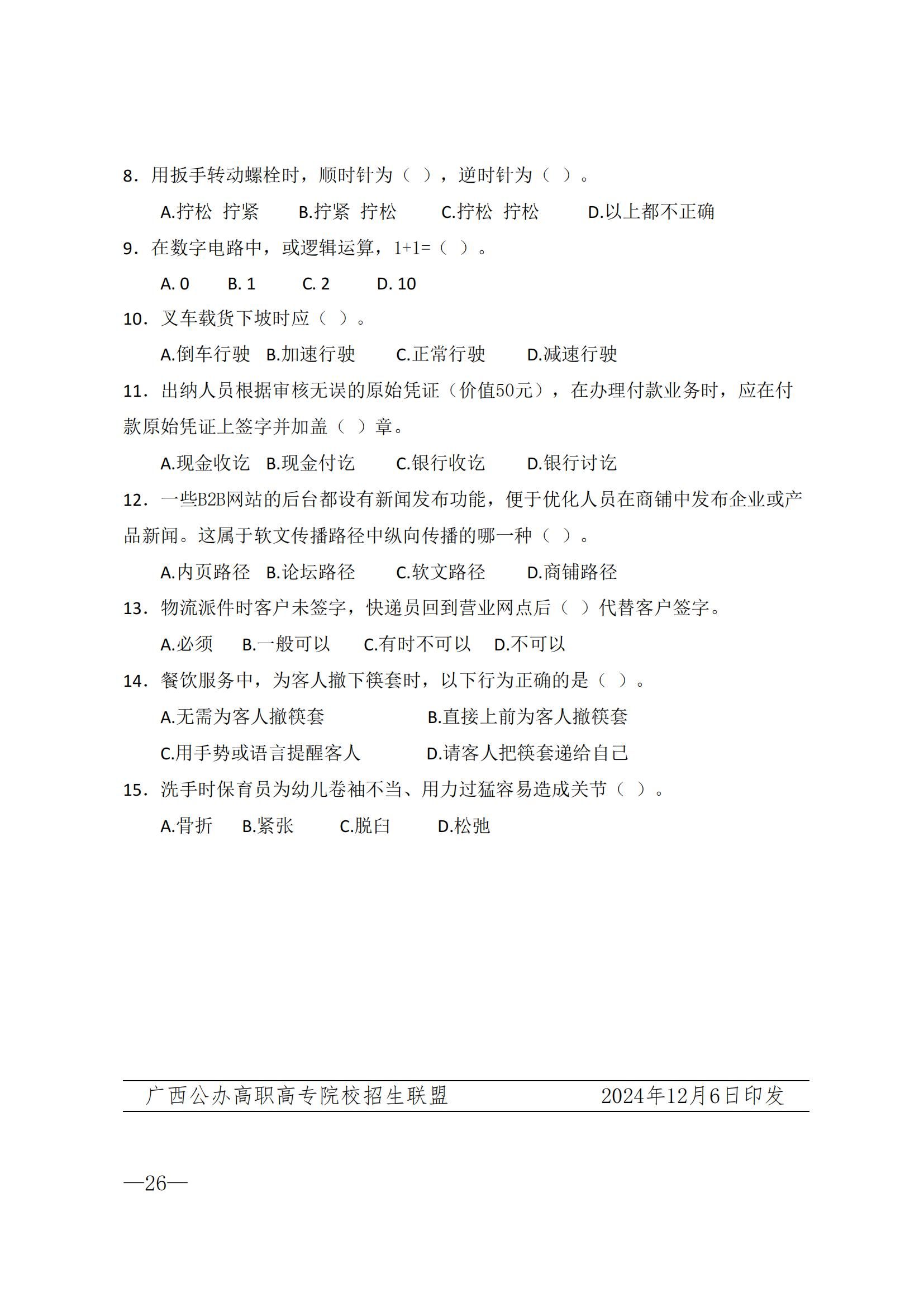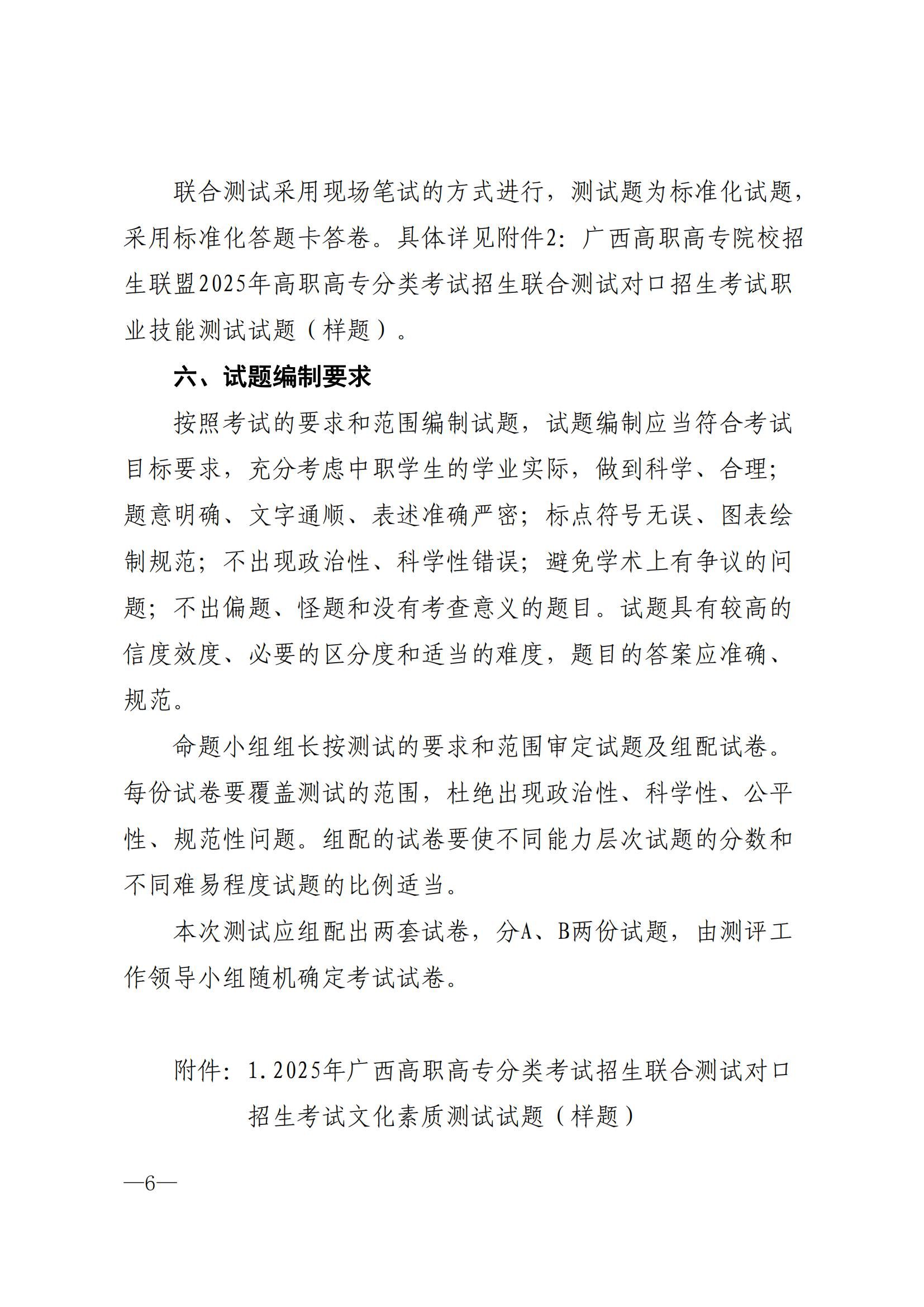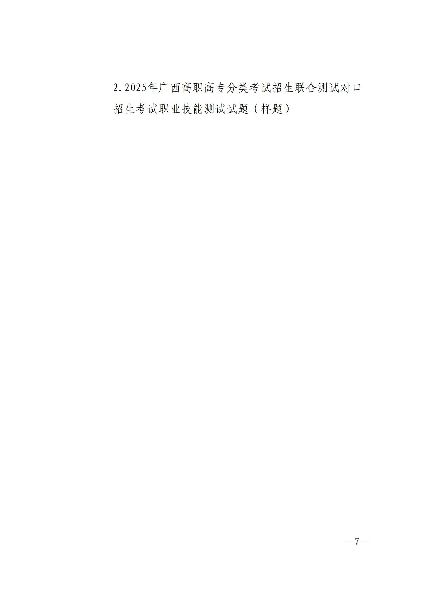 桂高职单招〔2024〕36号 关于公布《2025年广西高职高专分类考试招生联合测试对口招生〈文化素质测试+职业技能测试〉考试大纲》的通知.pdf