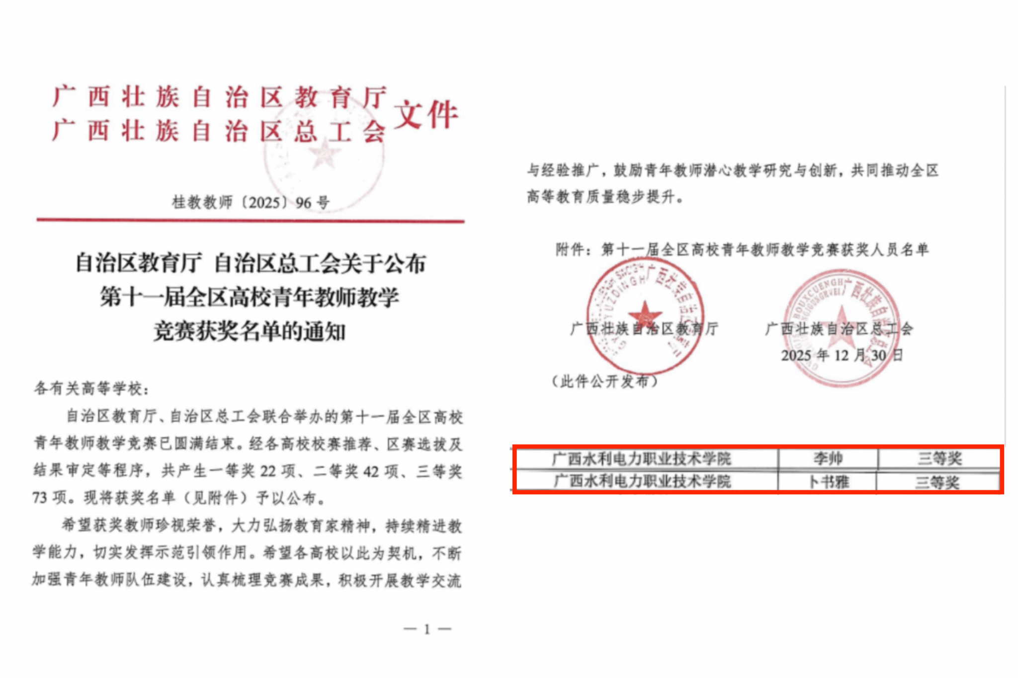 喜报!学校两位青年教师在第十一届全区高校青年教师教学竞赛中双获佳绩