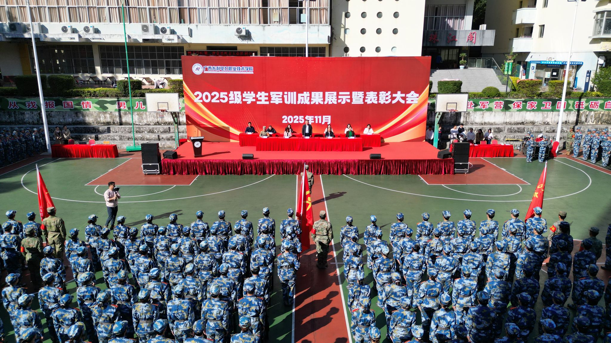 [本网讯]11月20日,学校2025级学生军训成果展示暨表彰大会分别在长堽、里建两个校区举行。学校党委书记李林、校长刘存香、党委副书记莫海燕、纪委书记邓文勇、副校长周涛出席大会,副校长黄海滨、总会计师潘念萍主持大会。
