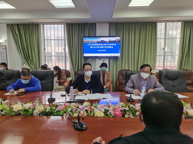 [本网讯]为总结交流第八届中国国际“互联网+”大学生创新创业大赛等双创大赛工作经验,部署2023年创新创业大赛有关工作,1月5日上午,学校在长堽校区行政办公楼三楼会议室组织召开了2022年创新创业大赛工作总结会暨2023年大赛工作布置会。周涛副校长、发展规划与科技开发处杨鸿锋处长、团委副书记石春丽、各二级学院领导及创新创业大赛指导老师代表共40多人参加了会议。