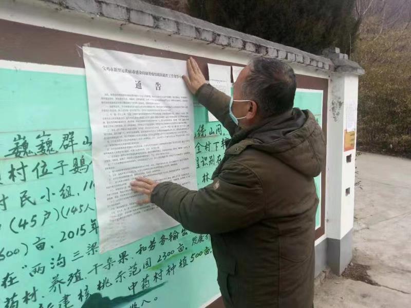 疫情就是命令,防控就是责任。为坚决打赢新型冠状病毒感染肺炎攻坚战,保护人民生命安全,1月26日(大年初二),我院两名驻村扶贫干部积极响应学院党委关于党员干部带头深入疫情防控第一线的号召,主动放弃休假,立即赶赴我院所帮扶的太白县鹦格镇棉寺坝村,全力协助该村做好疫情防控工作。