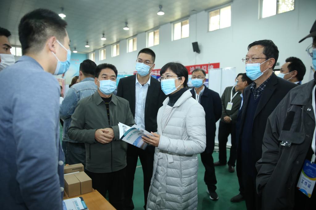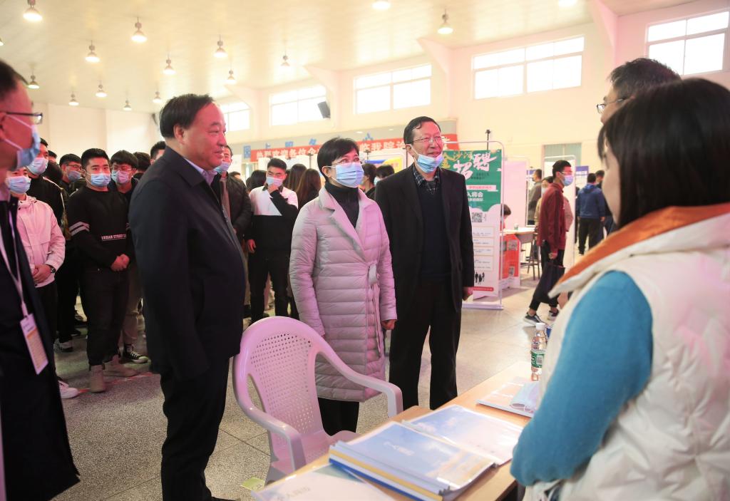 学校领导在西校区乒羽馆招聘会现场