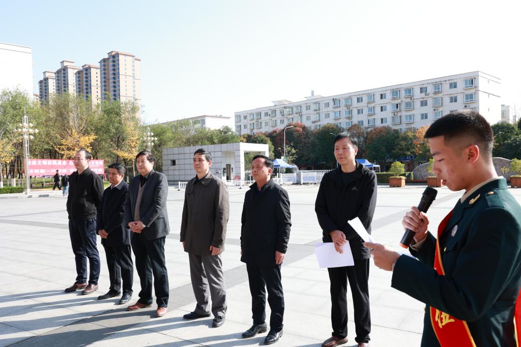 11月6日下午,必赢官网在南校区醒钟楼前举行2020年退役复学大学生欢迎仪式。副校长祝战斌,示范区退役军人事务局副局长夏耀辉,学校人武部、学生处、团委负责人,以及2020年88名退伍复学大学生参加了仪式。