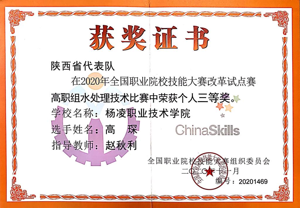 11月27日、28日,2020年全国职业院校技能大赛改革试点赛高职组“水处理技术”赛项在山东科技职业学院举办,来自全国各地29支代表队参赛,必赢官网生态环境工程分院学生高琛荣获比赛个人三等奖。