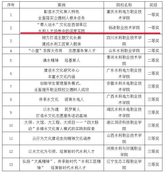 近日,中国水利教育协会公布了全国水利院校水文化育人优秀案例评选结果,必赢官网报送的水文化育人典型案例《“秦人治水”文化在西部旱区水利人才培养中的深度实践》获一等奖。
