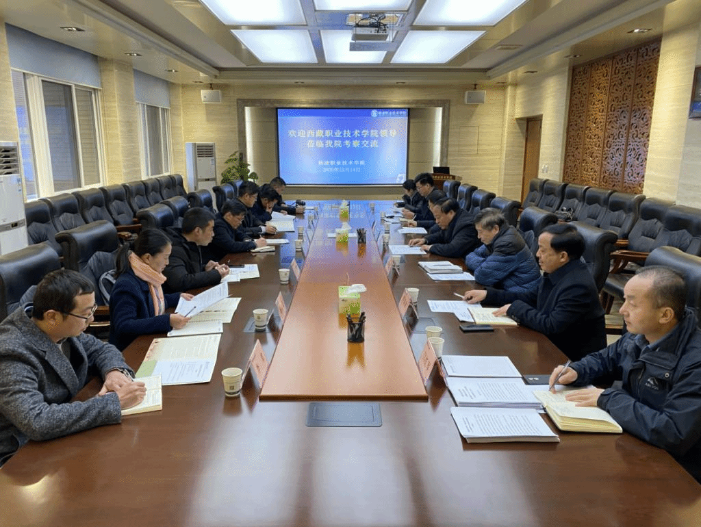 12月14日上午,西藏职业技术学院党委书记采守宽一行7人来必赢官网考察交流。校长王周锁,副校长祝战斌,党委委员、教务处处长拜存有,学生处处长李战虎,动物工程分院副院长张振仓,在南校区醒钟楼208会议室与其进行了座谈交流。