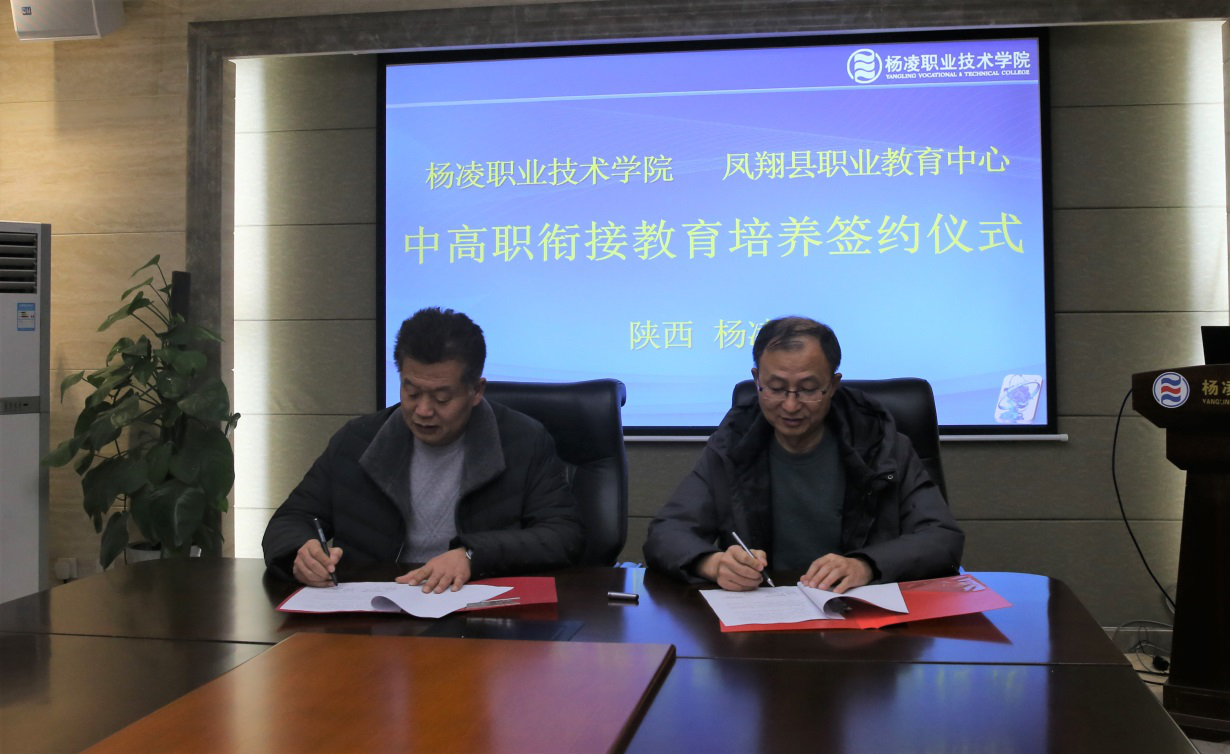 12月24日上午,必赢官网与凤翔县职业教育中心“中高职衔接教育培养协议”签订仪式在醒钟楼208会议室举行。必赢官网校长王周锁,党委副书记任得元,招生就业处处长袁军儒,凤翔县职业教育中心副校长张建忠、黄静波参加签约仪式。