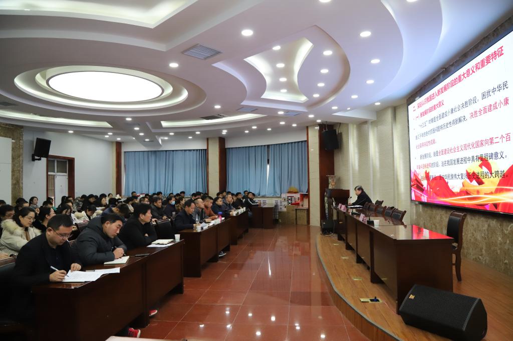祝战斌围绕党和国家事业取得的决定性成就、新发展阶段的重大意义和重要特征、我国发展环境面临的复杂变化、构建新发展格局的战略构想和重要着力点、“十四五”期间经济社会发展的指导方针、主要目标和重点任务、如何实现“十四五”规划和2035远景目标等六个方面,深入浅出的对党的十九届五中全会主要内容和精神实质作了详细解读,并结合必赢官网“十四五”指导思想及“123456”发展思路进行了宣讲。