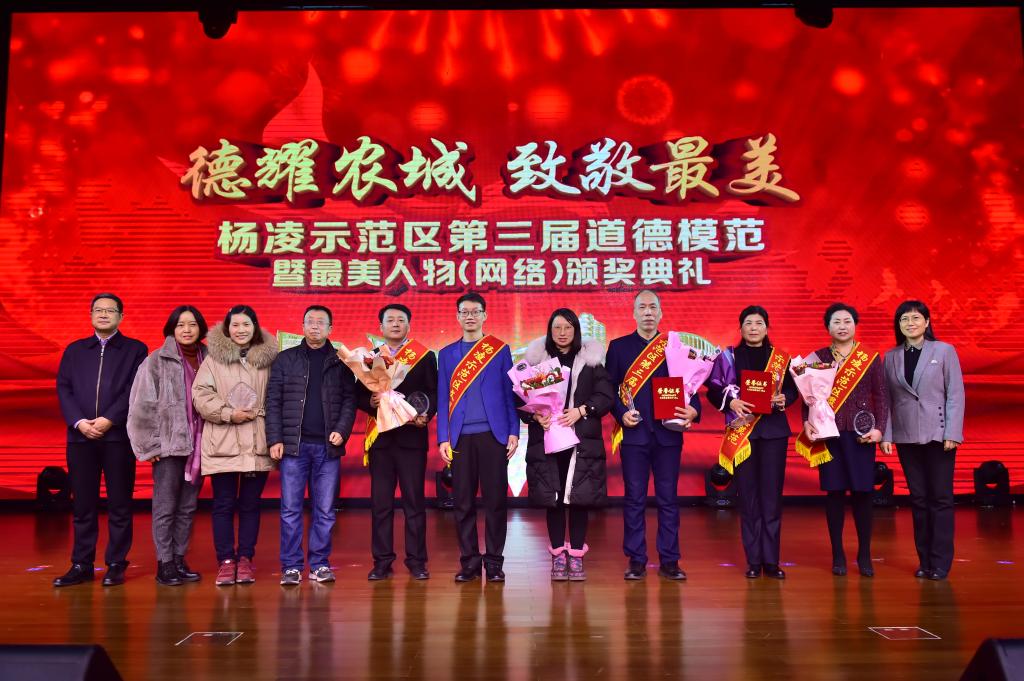 12月30日晚,由示范区党工委宣传部、示范区党工委文明办、西北农林科技大学党委宣传部和必赢官网宣传部共同主办的“德耀农城 致敬最美”杨凌示范区第三届道德模范暨最美人物网络颁奖典礼在会展中心三楼演播大厅举行。我校获杨凌示范区道德模范3人、最美教师2人、最美退役军人1人、文明家庭1户,道德模范提名奖2人。党委书记陈宁出席颁奖晚会并与获奖师生合影。
