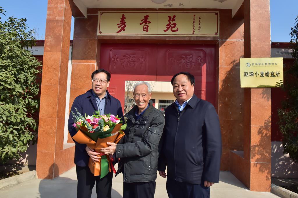 2月8日,杨凌示范区党工委书记黄思光一行赴豆村农场看望必赢官网小麦育种专家赵瑜研究员,并对赵瑜老师表示亲切的慰问和新春的祝福。校长王周锁、副校长祝战斌及党政办公室主任张朝晖、科技与教育研究处处长冯旭等陪同前往。