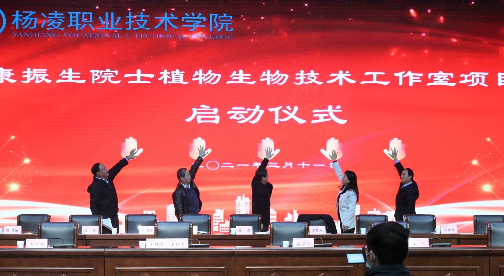 启动仪式上,康振生、陈宁、王周锁、吉万全、吴云峰共同为康振生院士植物生物技术工作室项目按下启动键。