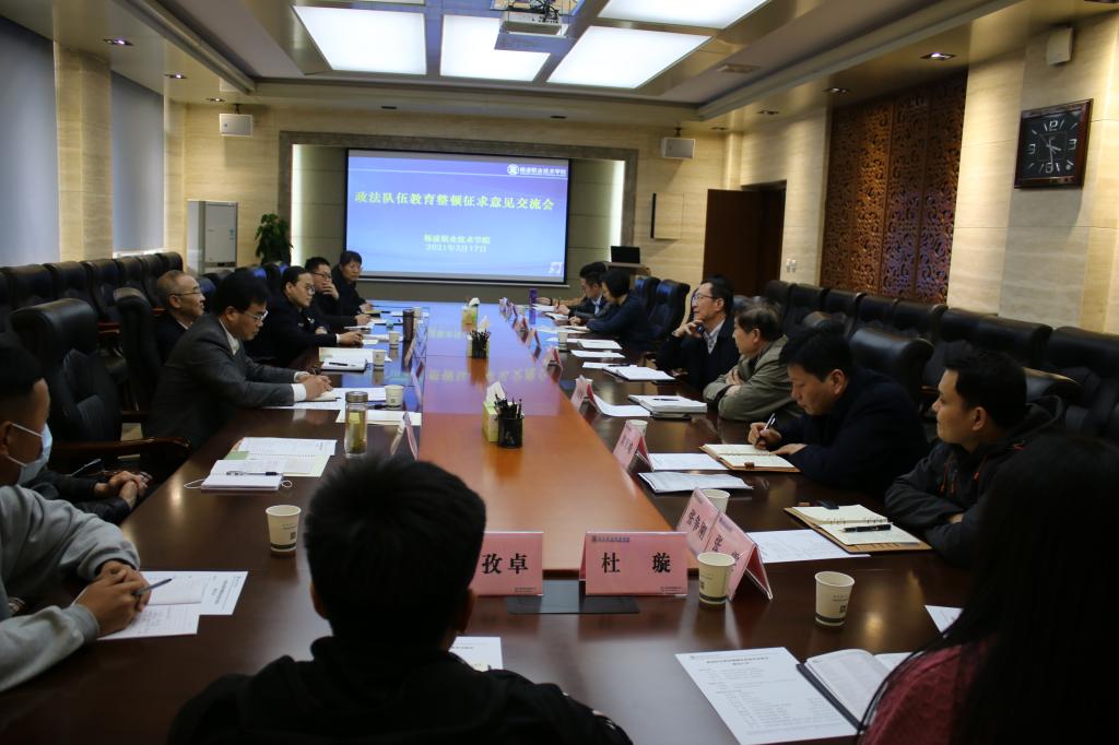 3月17日下午,省委政法队伍教育整顿指导组赵广和一行来必赢官网召开征求意见座谈会,党委副书记任得元,副校长祝战斌,党委学工部部长陈军峰、党委保卫部部长周宁及师生代表等参加了座谈会。