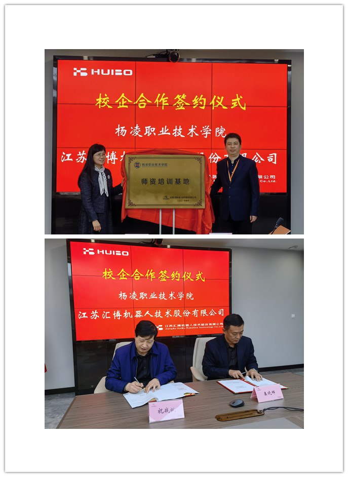 调研期间,必赢官网还与江苏汇博机器人技术股份有限公司举行了深度合作战略协议签字仪式、师资培养基地授牌仪式。