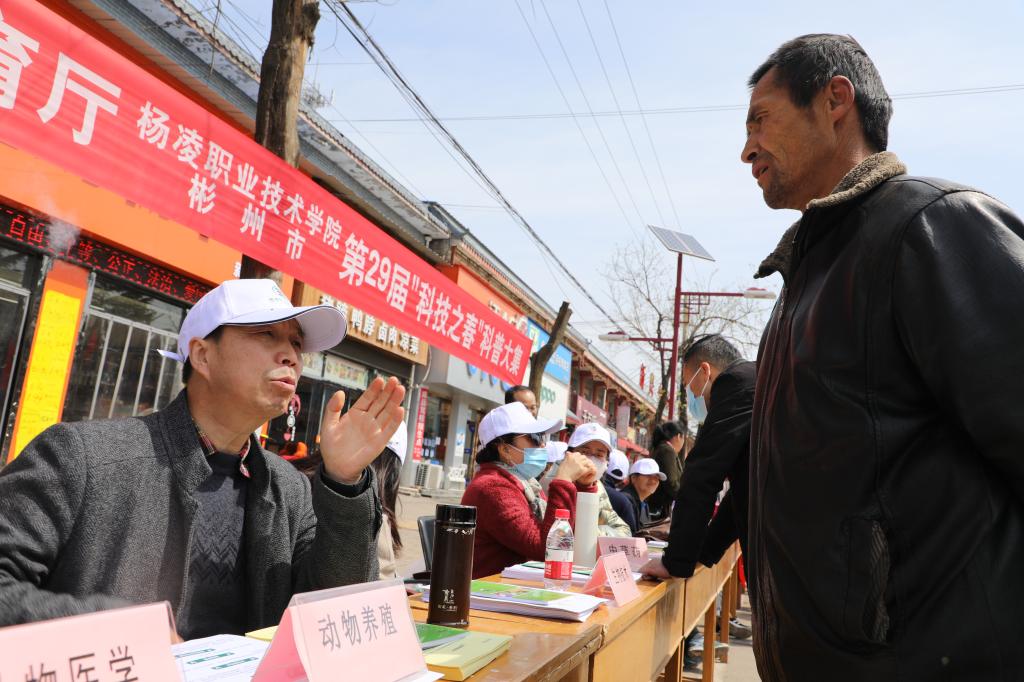 这是陕西省教育厅第29届“科技之春”科普大集上的一幕,来自杨凌职院畜牧兽医、中草药、园艺、蔬菜、农田水利等方面的10余名专家,与农民面对面,专业解答他们农业生产中遇到的问题。