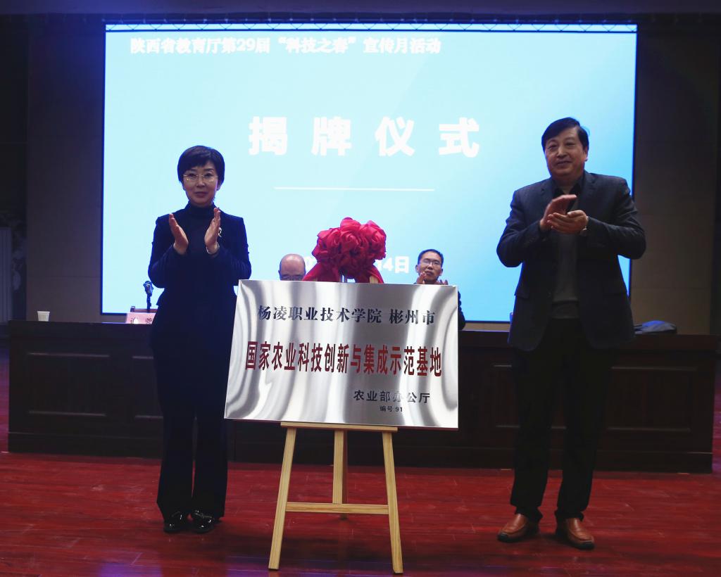 仪式上,杨凌职院与彬州市签订了《振兴国家农业科技创新与集成示范基地协议书》,并进行了基地揭牌仪式。