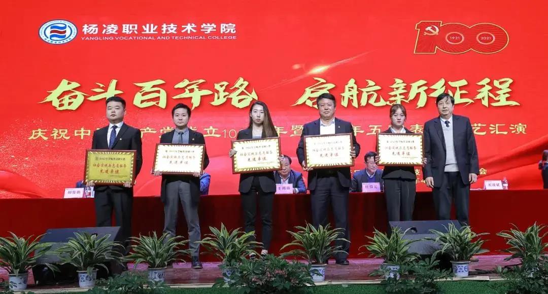 大会分为两个阶段。第一阶段的表彰大会作了工作报告,宣读了《共青团杨凌职业技术学院委员会关于表彰2020-2021学年度先进集体及先进个人的决定》,表彰了五四红旗团总支、先进团支部、优秀共青团干部、优秀共青团志愿者等先进集体和个人。22名新团员代表进行了入团宣誓仪式。