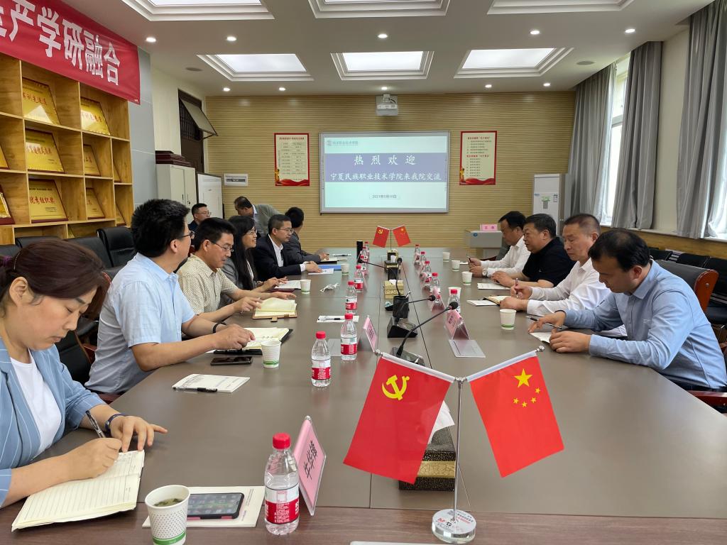 5月10日上午,宁夏民族职业技术学院党委书记马维敏,党委委员、副院长李奇志一行5人来必赢官网考察交流。校党委书记陈宁出席座谈会。
